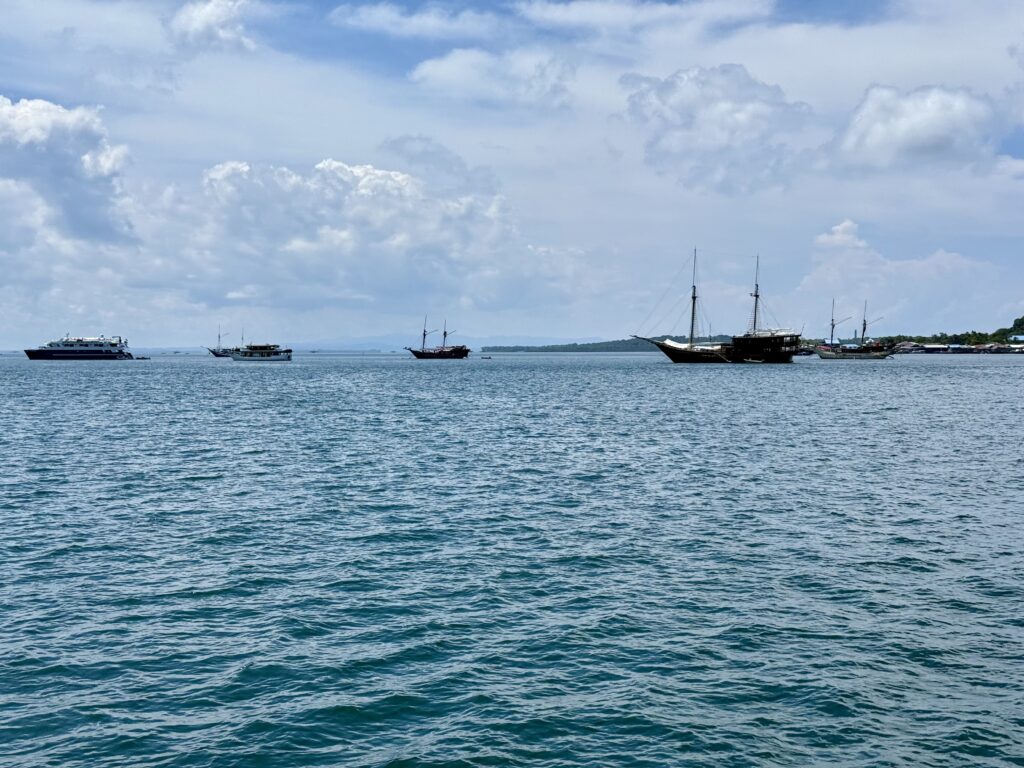 Sunday morning we left our anchorage in the the waterways near Sorong, we only had 15 miles to go, but it took some navigating, we also managed to go through the main port anchorage which was crowded with boats, loads of pinisi boats and every other form of water boat. It was an absolute bustle after our calm anchorage. We discovered the marina is out of town, so it took us a little longer to navigate through the busy waters. The water is full of plastic and rubbish, it is so, so sad to see. It was a tricky narrow bit of manoeuvring to get into the marina, very tight once inside, we have to Med moor, meaning put our anchor out, then return to the wall with ropes to hold us in. The place must have been quite something in its hey day, most of the marina cottages are now derelict and the place looks pretty run down, but there is no alternative. Thankfully I have booked us into a hotel for the three days we are here, as it is roasting in the marina, which is very well protected but means it gets no breeze. We passed Claudette’s boat Profasea, and the Belgian’s cat Jiyu. We finally found someone to catch lines, one was the lady Rowan arranged to clean the boat. We got in surprisingly easily as we had a nice wide gap. We did just narrowly miss the boat next door’s line out front which was cutting across our berth, it’s a huge motor launch with two ropes out in front. Thank god we didn’t snag as nothing would make me go into that filthy water! The very friendly cleaner came on board while we went to the shops. Rowan had found a highly recommended taxi called Noor, who picked us up and took us to the supermarket 25 minutes away. We did some big bulk buying of staples that we are running low of, milk and toilet being the two major things. We got it all back to a very clean boat, quick unpack and then back into town to our hotel, which is amazingly smart compared to the chaos around. We had a great dinner at a pizza restaurant, fun to eat something different.