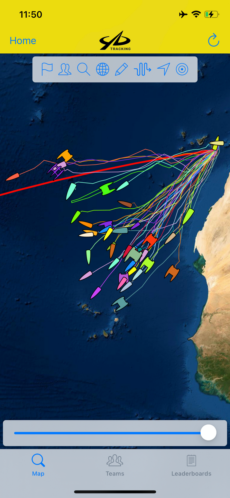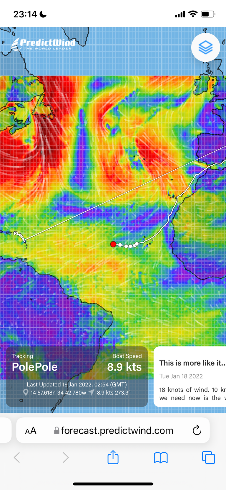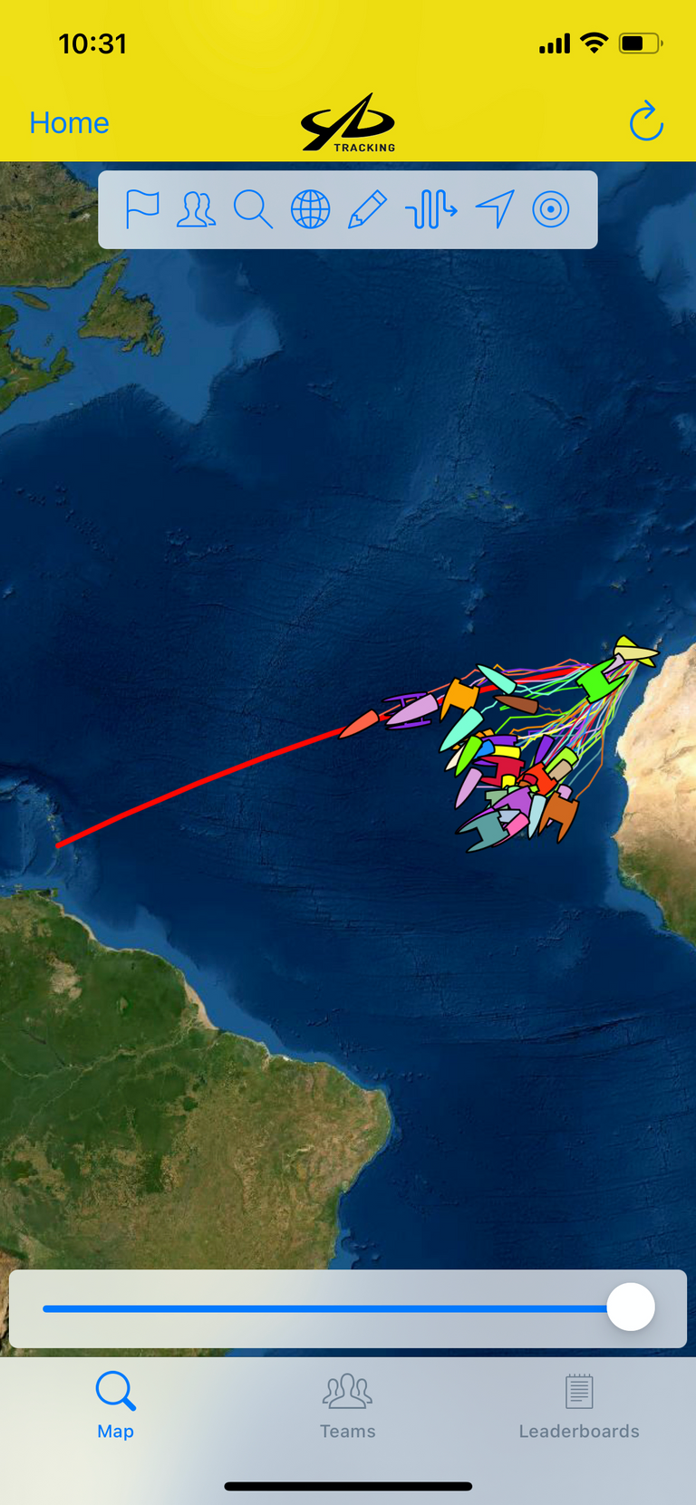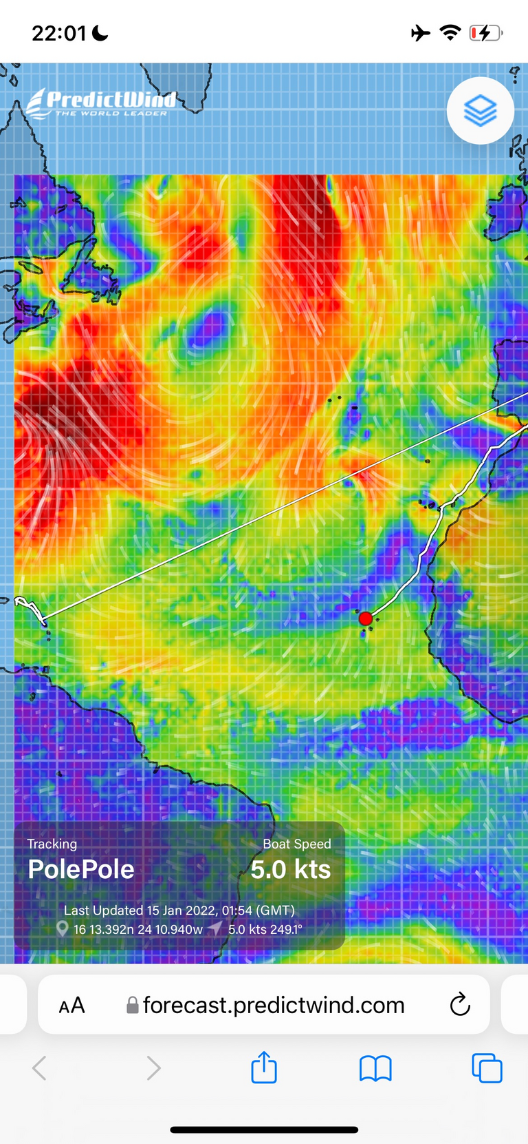 A screenshot from the Race – PolePole is the furthest south grey catamaran! The bright light green catamaran is our