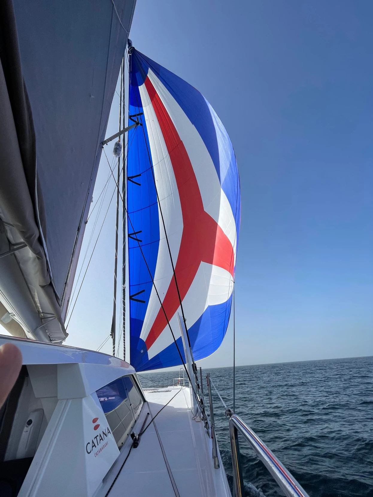 We made great progress overnight averaging between 8-9 knots with the Code sail up and winds in the low teens.