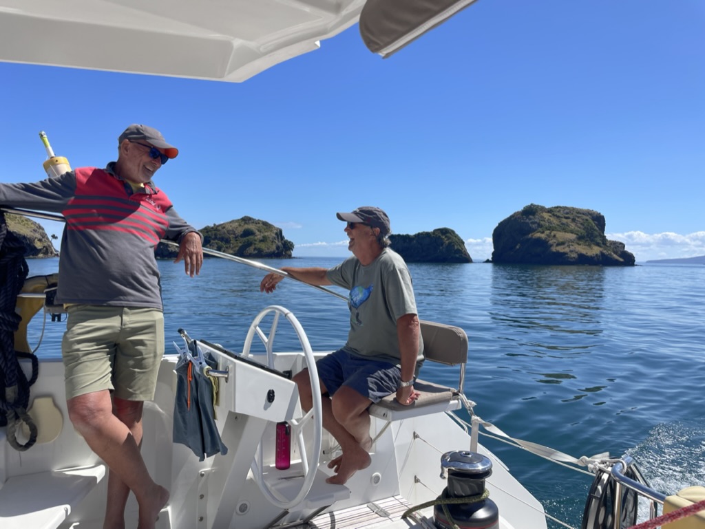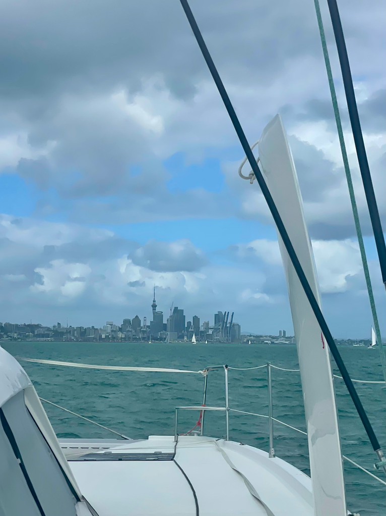 We got going before breakfast and had a lovely sail across the northern side of Waiheke Island, the wind steadily