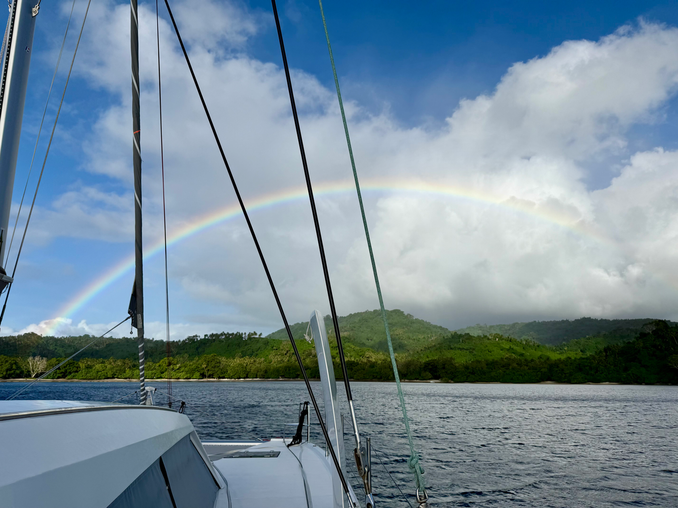 Before breakfast we saw the trimaran Trinity pull into the bay, they were the German couple who kindly brought some