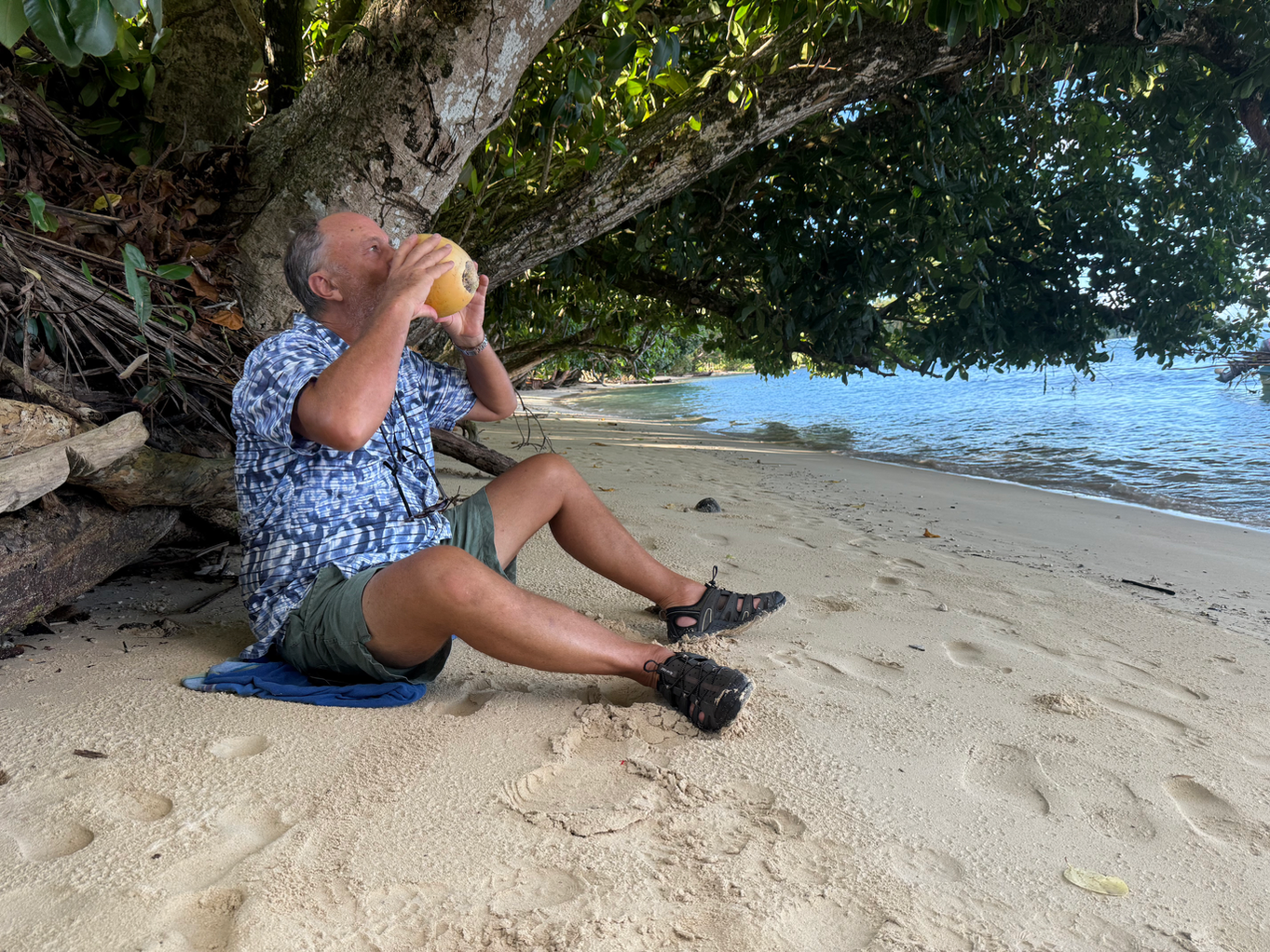 It is getting very steamy hot and in our little bay there is not a breath of wind. We headed
