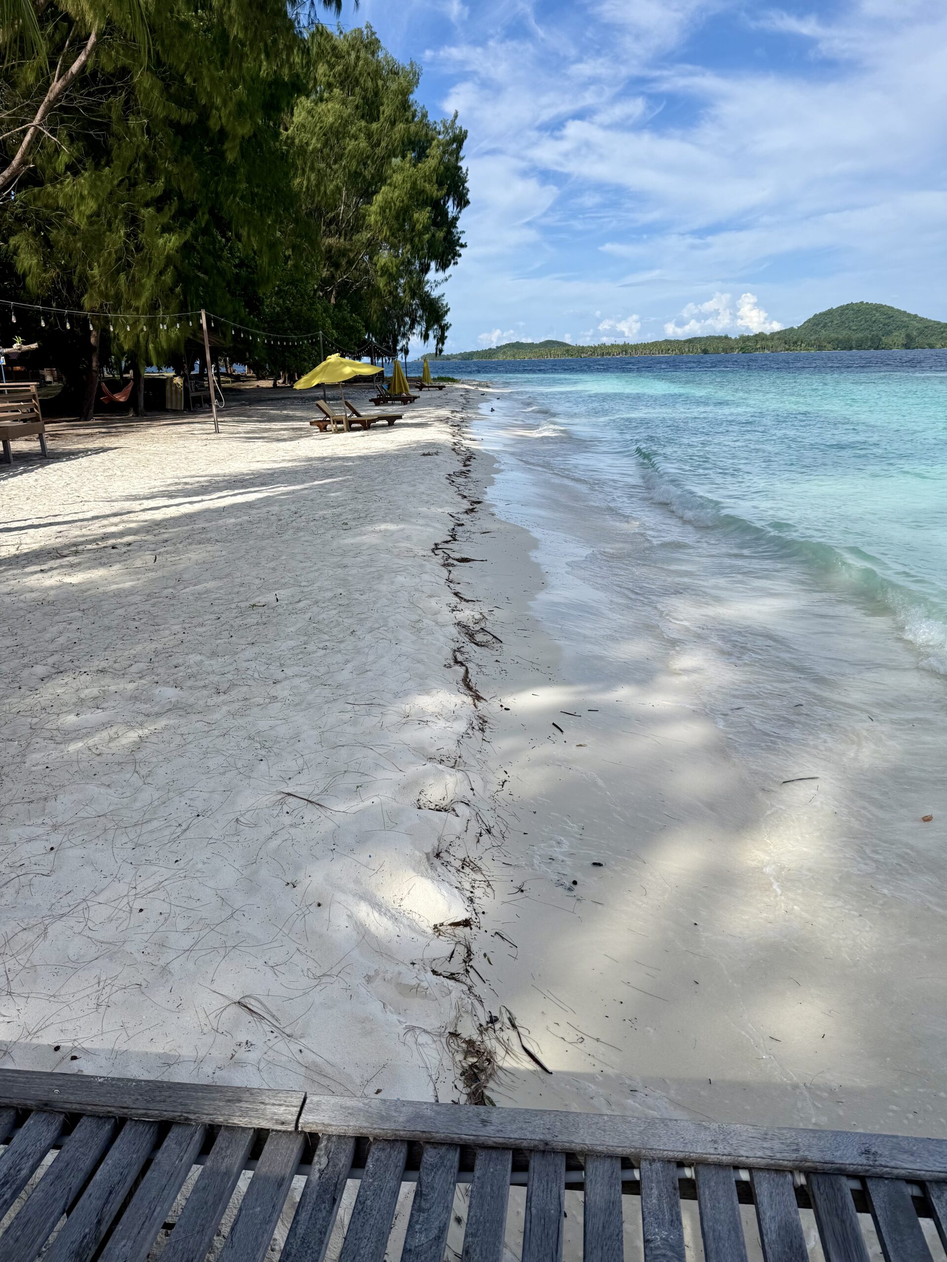 Alex and I went for a good paddle in the kayak around the turquoise archipelago of little jungle islands. We