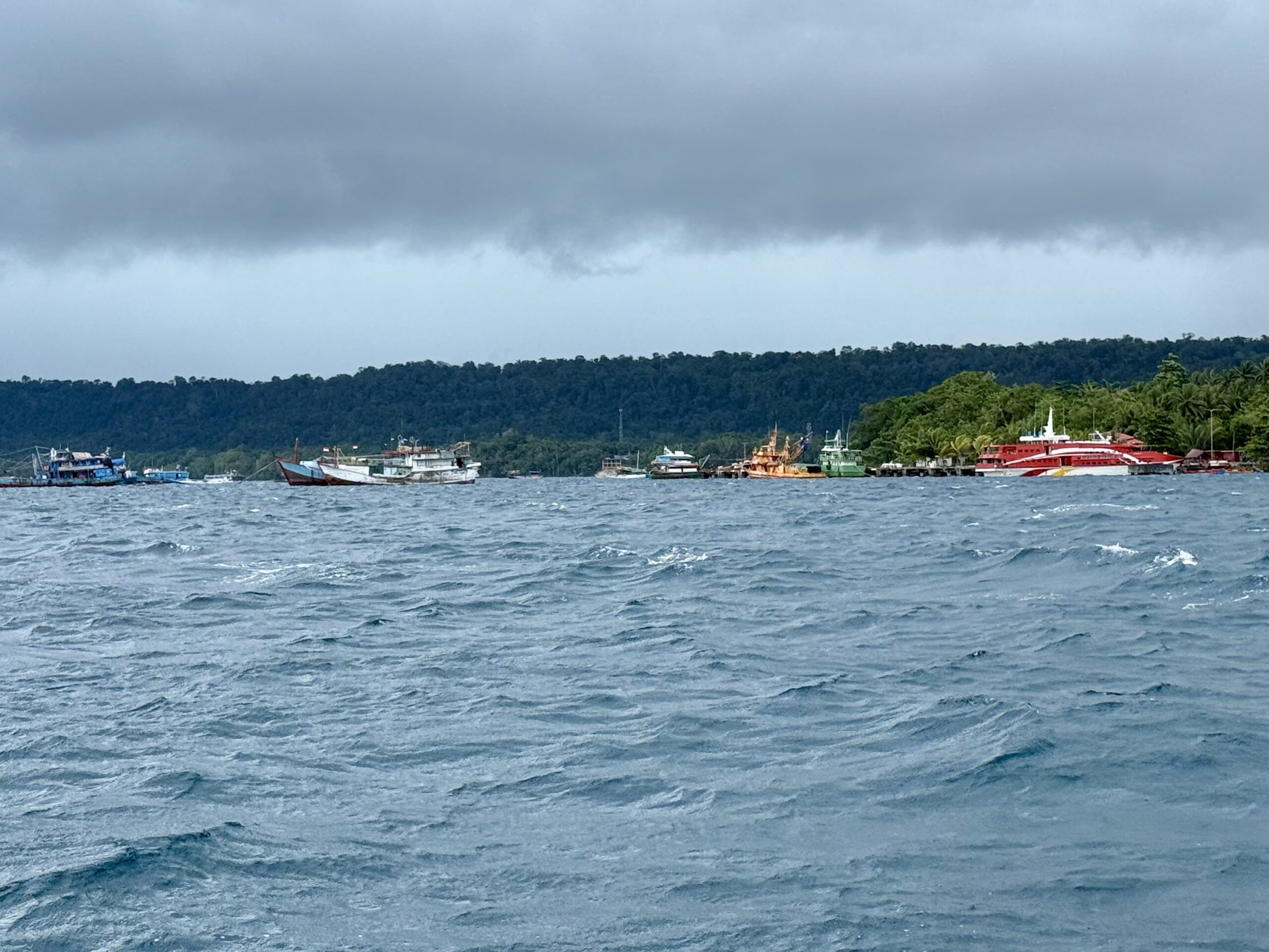 At about 4 am Rowan got us just outside the reef at Biak. With rain and a squall or two