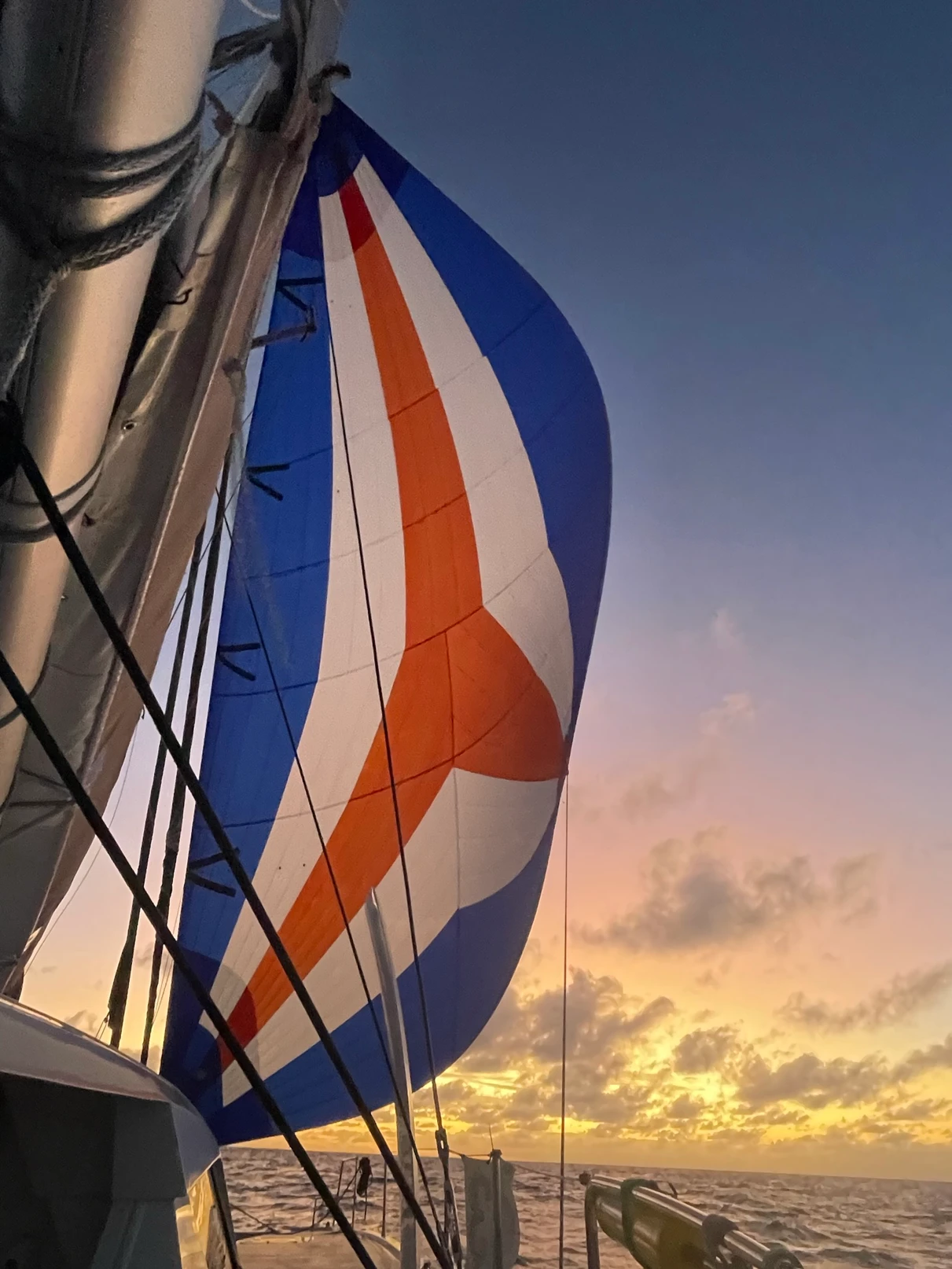 I was woken in the early hours by thundering footsteps along the deck. The snap shackle holding Scary Spice in