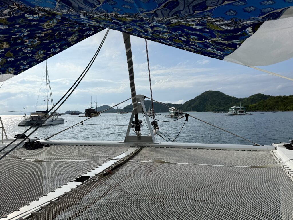 Rowan and I went to a coffee shop for breakfast as we have no eggs, tomatoes or bread left on the boat. A croque monsieur followed by an almond croissant was a real treat we have not had in a long time, we are definitely back in tourist territory. We did a bit of shopping and stocked up on fresh groceries before heading back to PolePole. It was boiling hot, we forced ourselves to do some boat cleaning which was desperately needed. We were too exhausted to head out for supper so relaxed on board and had a delicious rib eye steak from the Italian deli. Our evening was not as quiet as expected as there was a party phinisi next door playing very loud music…. Friday night in the anchorage! There are 3 yachts in the anchorage, the one boat is the German couple who did the same route as us from Raja Ampat. They left before us and we overtook them along the way when they stopped to do some repairs, we had been in touch along the way. Rowan helped them onto a mooring ball, they don’t speak much english so Rowan said it was quite difficult to communicate. The other boat is a catamaran from Western Australia.