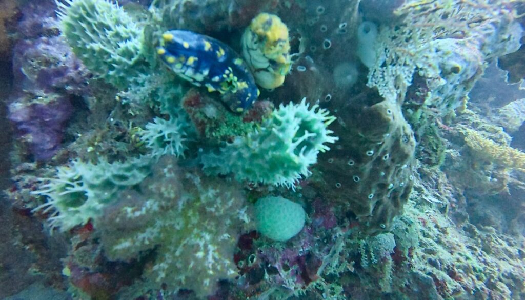 It took us less than ah hour to get back to Friwen island, very happy that the anchor came up no problem in the deep water and that it held so well. We were amazed to arrive in the Friwen anchorage and find 15 yachts and a couple of motor launches. The vast majority were Aussie catamarans who had a big Christmas get together yesterday with lots of kids and beach activities. This is the most boats we have seen in an anchorage since New Zealand. Rowan once again organised with the local guy Otto to go Dugong searching in the morning, we got a last minute message to say he had gone to church so we tried in the area ourselves which was equally unsuccessful as last time. We did do a very long drift snorkel with the current, which was strong enough for Luke to do the whole way with no flippers, the current just carried him along. Poor Luke is in the wars he has been savaged by bites and has blisters from his flippers! In this heat and plankton rich waters nothing heals very easily, but very grateful to my sister Lynda for sending more mercurochrome to Luke in London. It works so well when we are in and out the water so much. It was a good snorkel plenty to see and always something new.