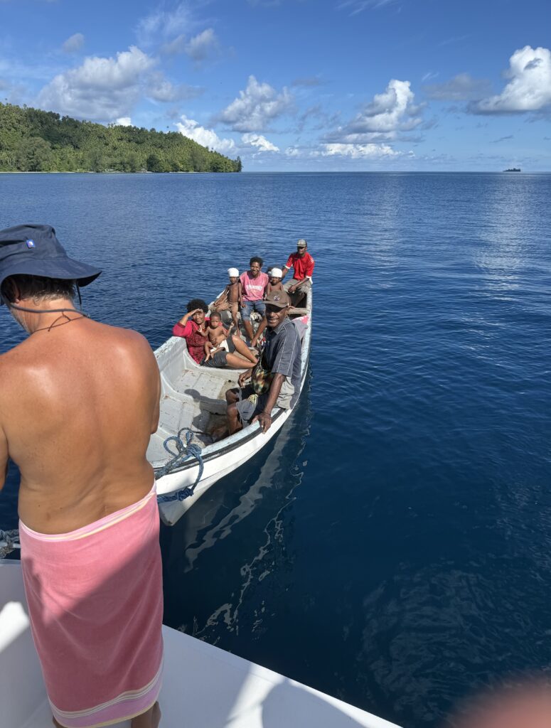 It wasn’t long before the boats arrived to ask for wifi. Some are brilliantly polite and bring bowls of fruit, coconuts, eggs, greens and others bring nothing saying they ‘want wifi’, no pleases or thank you. So they get a little lesson in manners too! Interestingly there is a big senior boarding school here, a lot of them are here from the big island Manus we sailed passed. The students seem to vary in age up to their twenties.