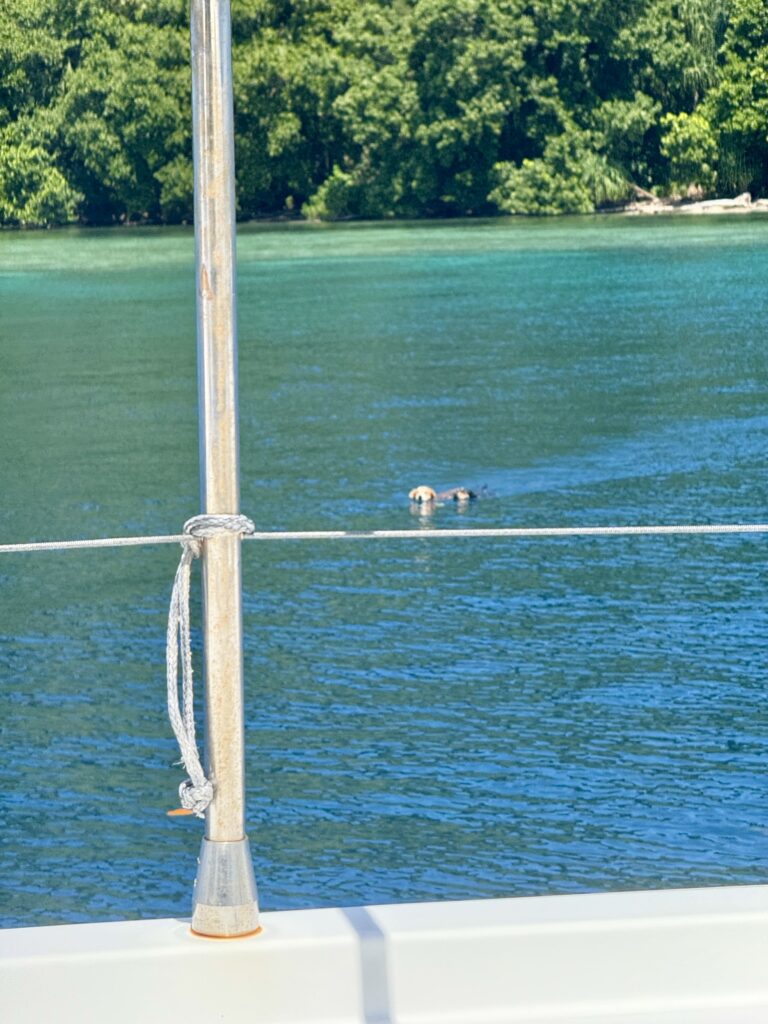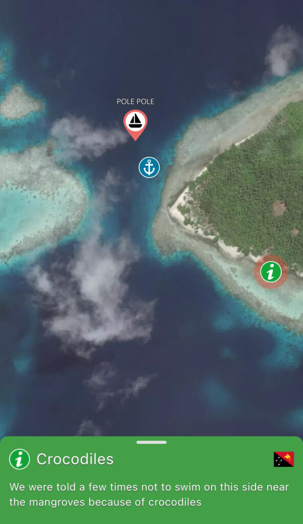 Rowan had a long snorkel early in the morning looking for mantas, I was a little concerned as he went around the corner to where I had spotted on the No Foreign Land app that there were crocodiles. I was very glad to have him back safely, sadly he didn’t see a manta. He was very dismissive of it until he messaged Patrice a French sailor we befriended in Papeete, who did this route last year, and he sent a video of his girlfriend snorkelling in that same spot, who saw a crocodile and they have it on video! I think it made Rowan think he would not swim so far from the boat again.