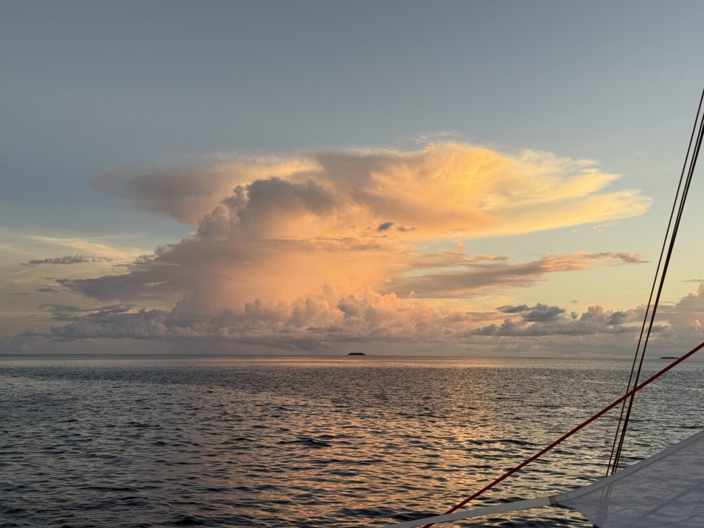 In the afternoon we went for a long snorkel both sides of the pass and swimming across it to confirm that it is deep enough for PolePole to go through tomorrow. It was a great snorkel, we drifted with the dinghy, there is a strong current as the water channels between the islands, also having the dinghy with us means we can jump in quickly if we need to. There were lots of fish and some a good size too. There were lovely pockets of good coral but sadly plenty of damaged coral too. The water at times was cloudy with bits (nutrients) which is the stuff the mantas love to eat, but not great for visibility. We saw a turtle but no mantas.