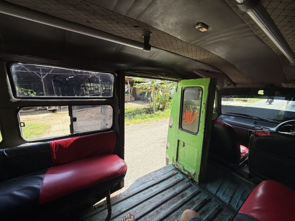 Only photo I took today, Finus’s empty ancient old bus which we had completely filled by midday