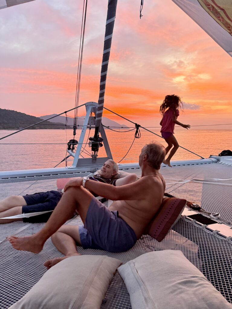 We met Edu and Kamen at the island Batanta when we met up with our friends on Navisana. Shonandra was on the other mooring ball here at Kri, so we planned to meet them at a Homestay for lunch. We went and had another long drift snorkel in the morning, always something to see including a big shark that only Xavi saw. We had a very good Homestay lunch of fried chicken, tofu and a green vegetable, all very tasty. The homestay has a lovely location right on the western tip of Kri with white sand beaches all around. Edu and Kamen have a very cute daughter called Mariana, who had so much energy to burn, Kamen is from Malaysia, speaks fluent English and Bislama, so can talk to all the locals which is so helpful. Edu is Spanish but grew up in France, and worked in London where he met Kamen. They have been living in Melbourne and sailed from Brisbane up here.