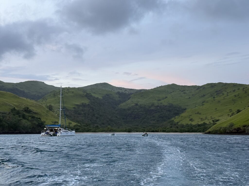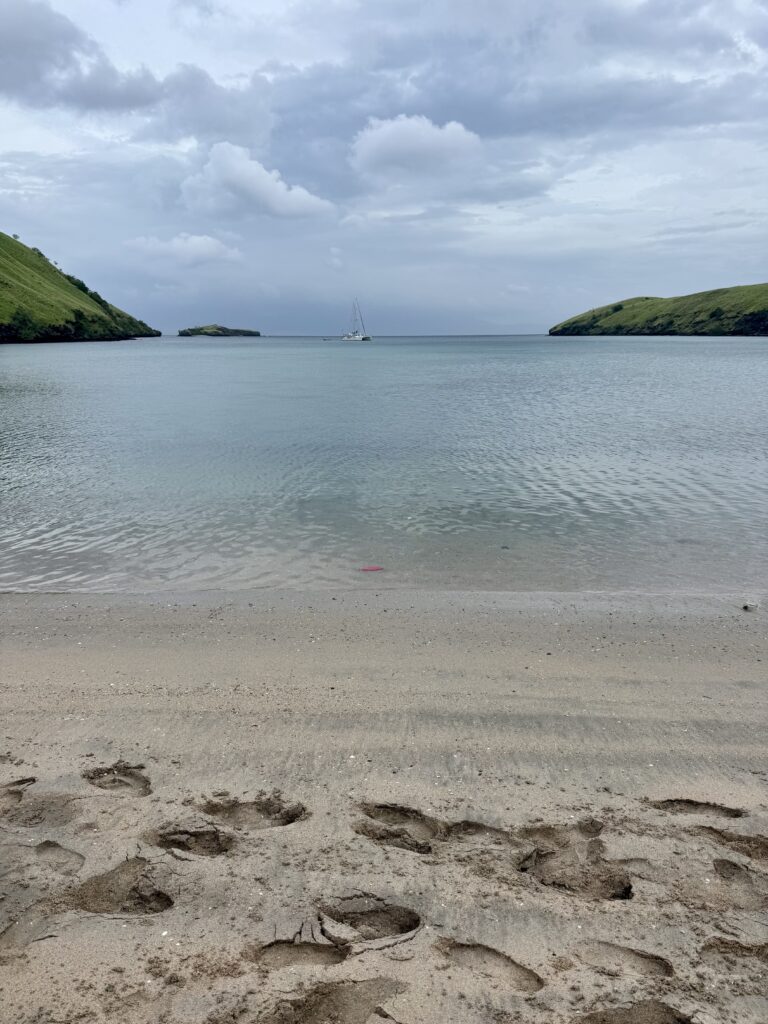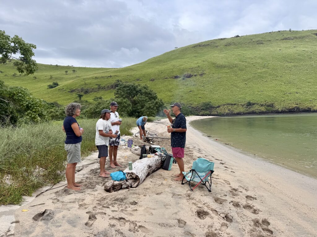 The three boats from the next door bay invited us to join them on our bay’s beach for a drink and beach fire. Turns out they all know each other, they all come from the East coast, Mooloolaba. Most of the Australian boats we have met in Indonesia are from Western Australia. It is so strange as I have found my favourite preserved ginger is from a place called Buderim which is next to Mooloolaba. I’ve also discovered my two nephews, sons of each of my South African sisters, live in Buderim. Kim on the boat Arka also comes from Buderim. This place seems suddenly to be cropping up everywhere. The two single guys are both ex mine workers, the one is a geologist and is still working for the mines. He can work from his boat and has occasional work trips. The other couple have been living on their boat for 10 years that he built from scratch. He is a keen 70 year old surfer, they have just finished surfing the southern beaches of Lombok, now heading to Raja Ampat doing it the other way to us. Everyone wanted to leave before it got dark, we could still see Seb’s canoe on the beach, he was still on the mountain, I bet he has found something else to forage! We discovered his wife is South African. Everyone is leaving tomorrow and heading to LBJ, we are waiting for the wind and swell to die down before heading the opposite way to Lombok.