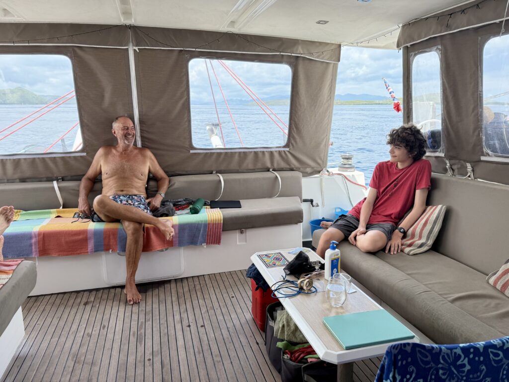 We made the decision to head back to LBJ as soon as we were awake. We had the double whammy of bad news that Jonny had a terrible night vomiting and upset tummy, he must have Rowan’s bug. Rowan is definitely on the mend and managed some toast this morning. He is fully occupied with sorting out the engine. Luckily the mechanic was available to come on board at 2pm. Rowan managed to contact the Australian boat Houdini to come and help us get onto a mooring ball, as without the one engine it is much harder to steer in tight areas. Thankfully Brooke came out to help us and got us safely onto our ball we had last time so we knew it was good and secure. Brooke’s husband had just got back from a week in Australia she has spent the time all on her own. I certainly couldn’t do that!