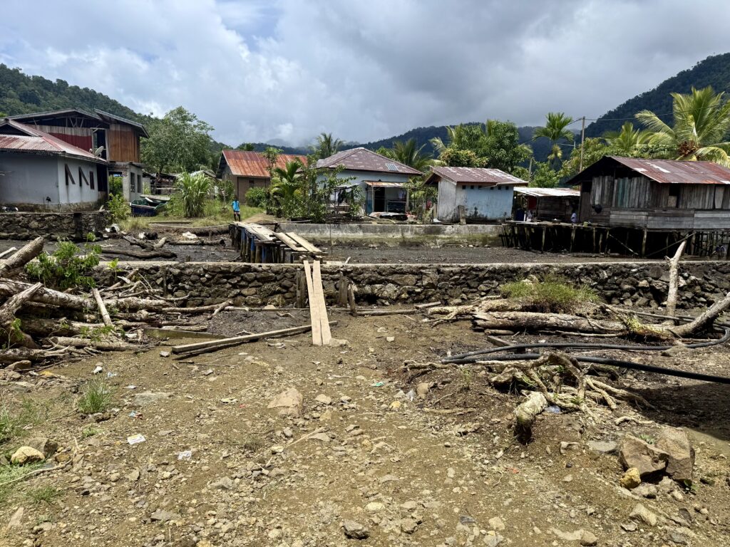 The rickety temporary bridge, the water front bridge looked like it had been washed away