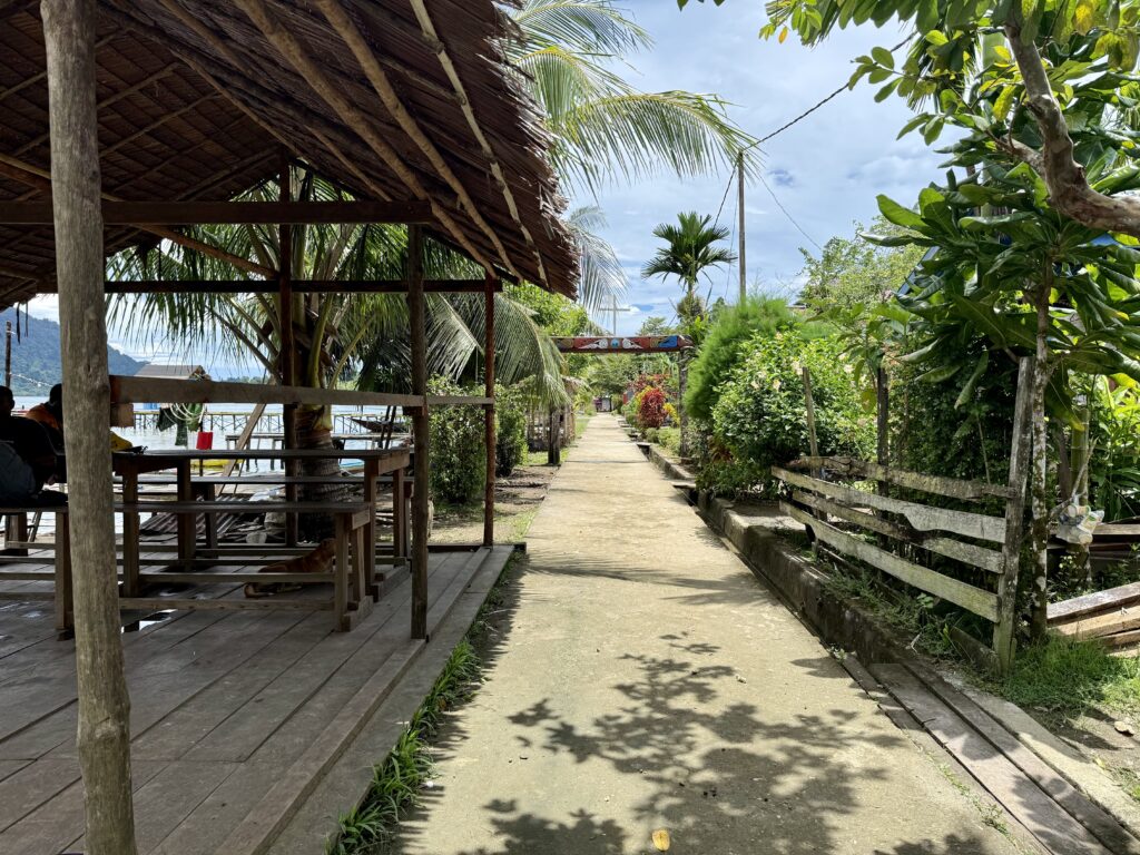 We had a lot of fisherman with their bright orange lights gliding silently around the river and getting quite close to the boat last night, I found it a little unnerving in the pitch dark, but it turned out to be fine and a very peaceful night. We got a few chores done and then decided to head into the village, Nathan the guy in the boat yesterday was sending Rowan messages every half hour, which were really beginning to annoy Rowan. It was a very smart Christian village, most of the houses on the water front, with endless boats tied up to the many jetties along the water front. We had got so used to the Islands we have been travelling through all speaking reasonable English, it is rather a shock to find that we can’t communicate very well now at all, most here seem to have no English at all. We had a good walk the length of the village and bumped into Nathan half way. We confirmed we would like to go on a river tour with him tomorrow at 10am which he was dead chuffed about.