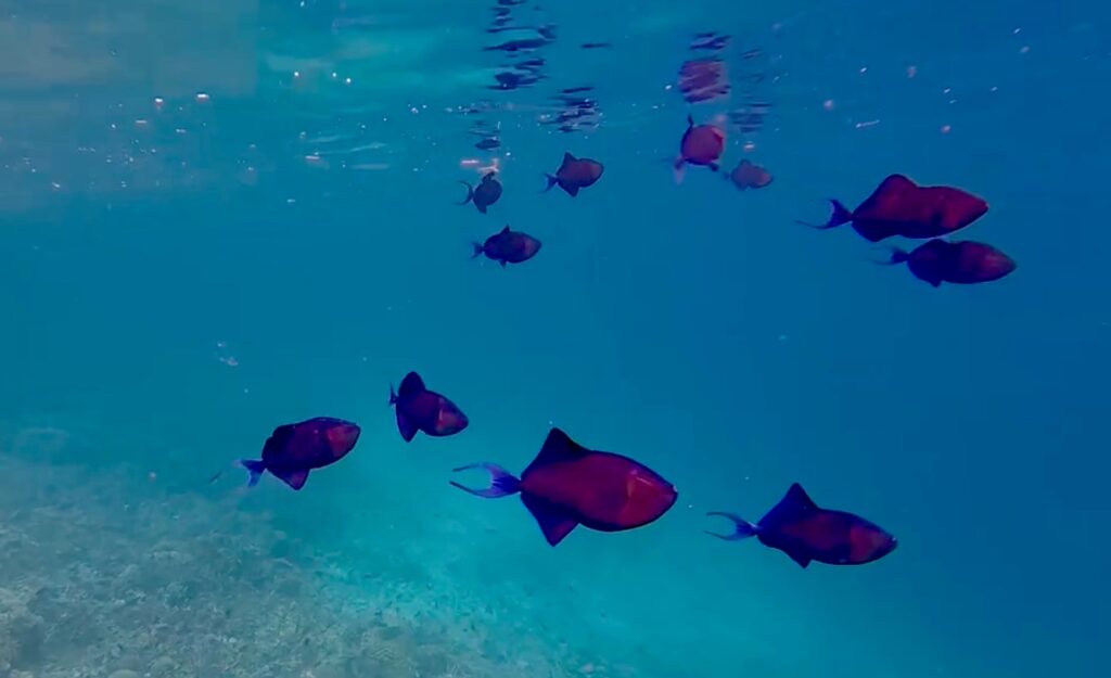 Back to PolePole for lunch and a relax before heading out again, this time going in the other direction around the island to the little village Yenbuba village and their lovely jetty with the giant clams. It was a spectacular long snorkel which impressed everyone. When we finally got out a squall had whipped up and the water was choppy, making it a very wet trip home with 6 in the dinghy. So much water was splashing in that we were seriously bailing the water out. We could not get up on the plane so it was a slow journey back.