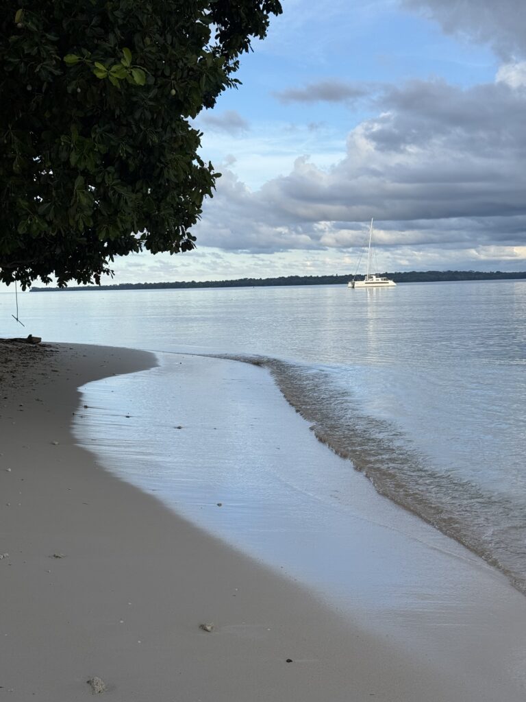 We headed over to the resort for supper, escorted by John (Clem’s nephew). Clem’s wife greeted us, she and John’s wife, Bonnie cooked for us and joined us for supper which was lovely. No men from the resort joined us for the meal just the ladies. The resort had two intrepid older Aussie ladies staying so they were eating with us too. They were both teachers, and principals in Tasmania, and once a year go on adventurous holidays together. We were so surprised that they could have found this remote place. It is a surf spot, and caters mainly for surfers in the season. They are here for 11 days and have been taken on various trips every day, they were loving it, it is pretty basic accommodation. It was a fun, interesting evening. John and Bonnie escorted us back to the dinghy in the dark. Always relieved that I keep a torch permanently in my bag. The tide had gone out so it was a little tricky getting beyond the reef, luckily we leave plenty of lights on PolePole so she is like a Christmas tree on the water and can’t be missed!