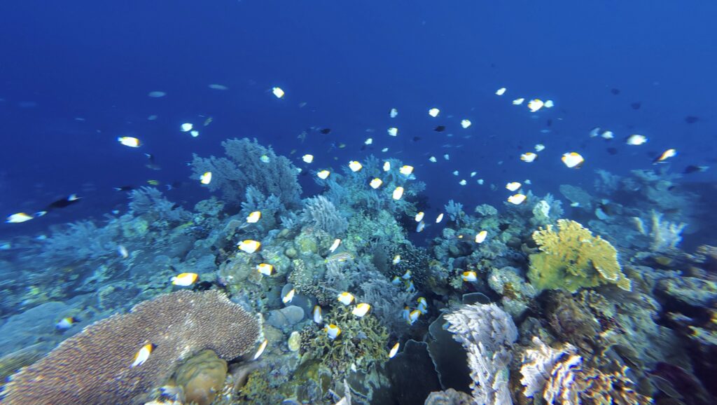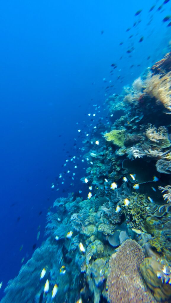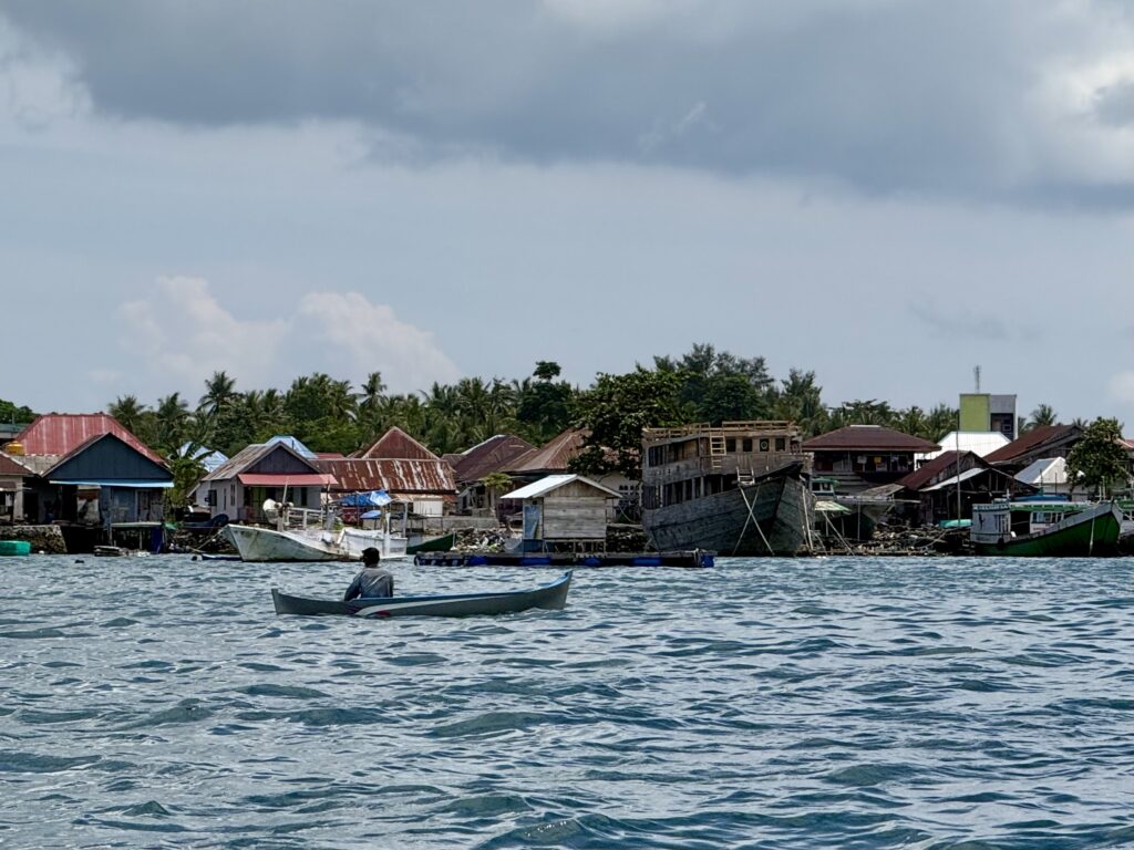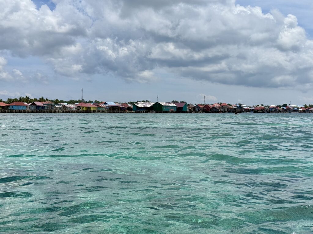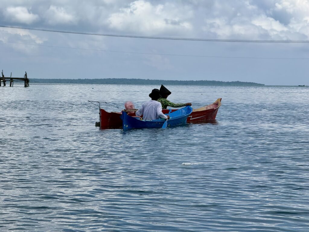 Mr Albar was with us at 8:30am which was a bit of a shock as he was half an hour early. He declined breakfast with us! We went off in his boat for a snorkel, we shot across to the island next door and I was getting very despondent as there was so much rubbish in the water, his engine cut out every 5 minutes to clear plastic off his propeller. I think he read our faces as he landed up taking us way around the island where no long boats or fishermen were. I told Rowan I only wanted to go in if it was exceptional, my cough and ears are not 100%, so I only wanted to get in if it was really worth it. Within seconds Rowan told me to get in and it really was exceptional. No rubbish, good visibility, amazing coral varieties on a very dramatic drop off, with loads of fish. Huge schools that twinkled as they caught the sun. We saw loads of the little blue dotted rays, a crocodile fish and more sea snakes. Mr Albar snorkeler with us dragging the boat along, we must have covered a good few kms. Mr Albar was so sad when I initially said I wouldn’t snorkel because of the rubbish, but feel it is good for them to know their tourism will dry up if the rubbish continues.