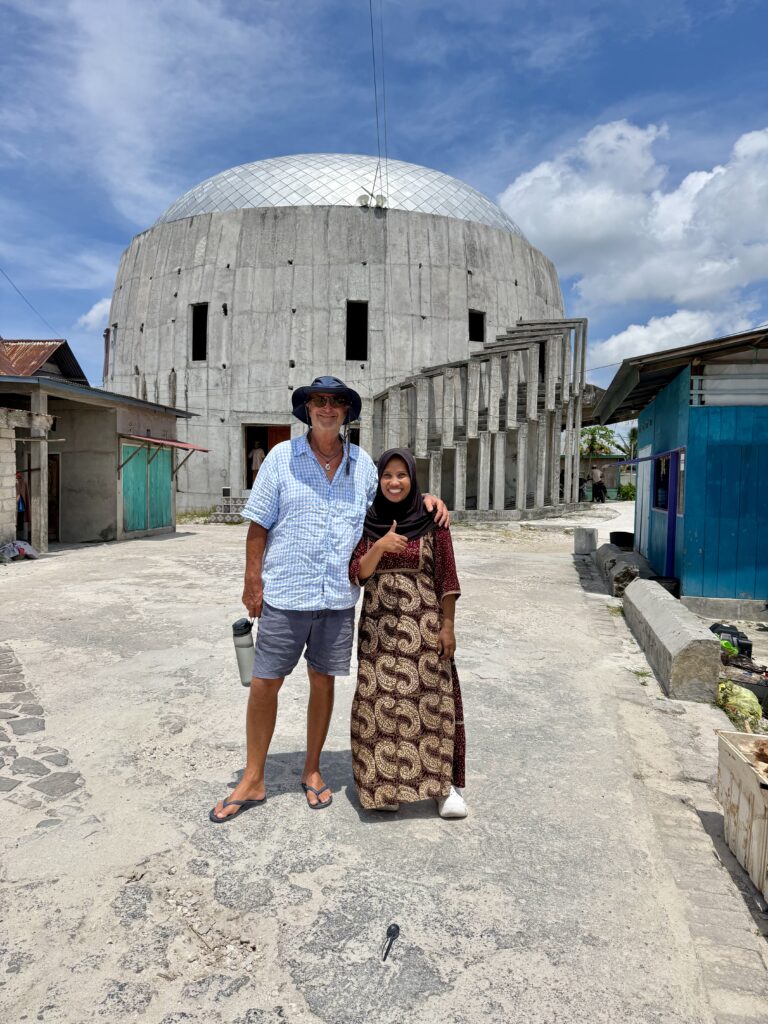 Rowan and Ayu in front of this unfinished Mosque, started years ago!