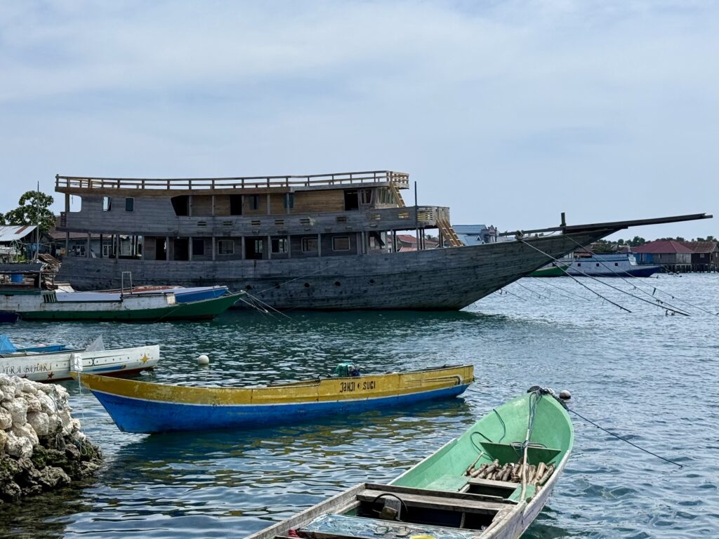 So many boats of every size and description, a big wooden boat being built