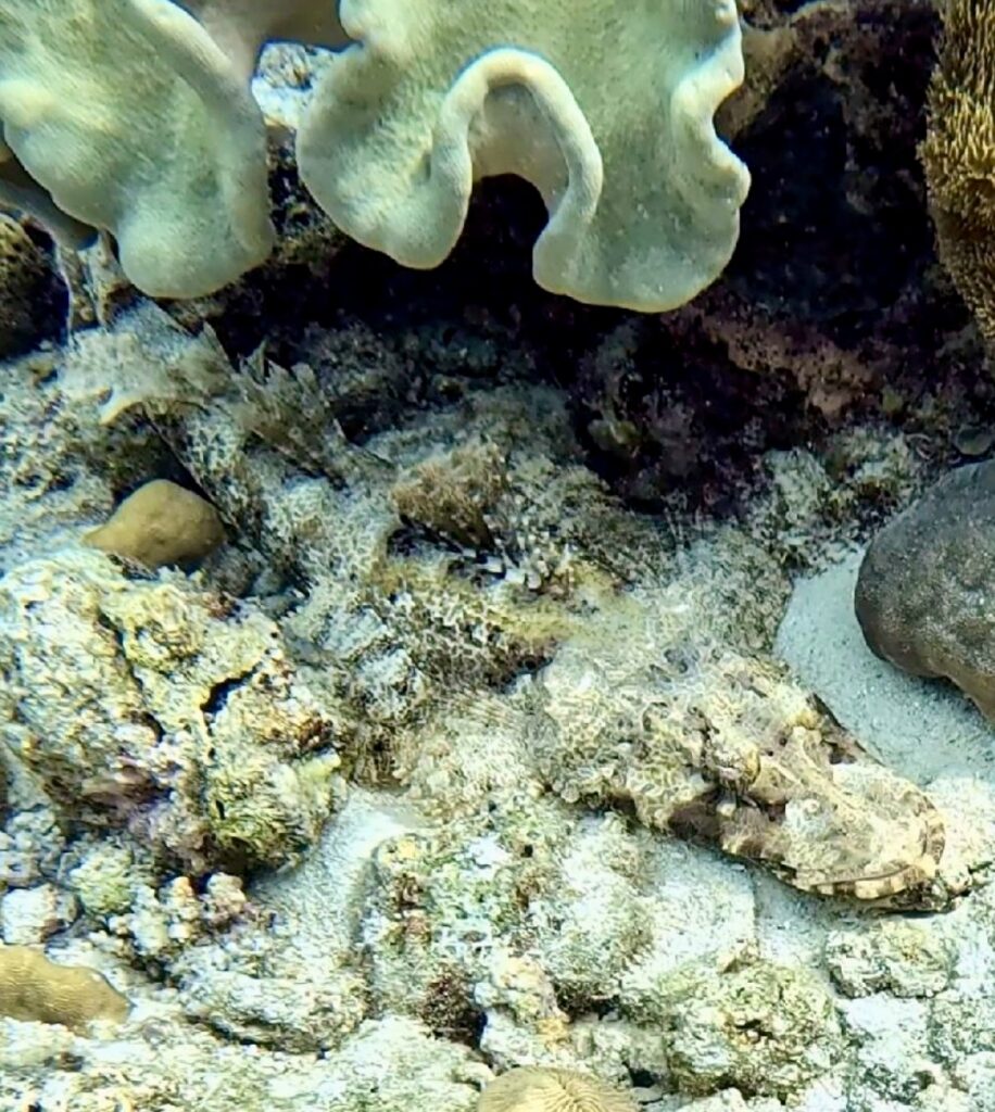 A crocodile fish well camouflaged , not Rowan’s picture