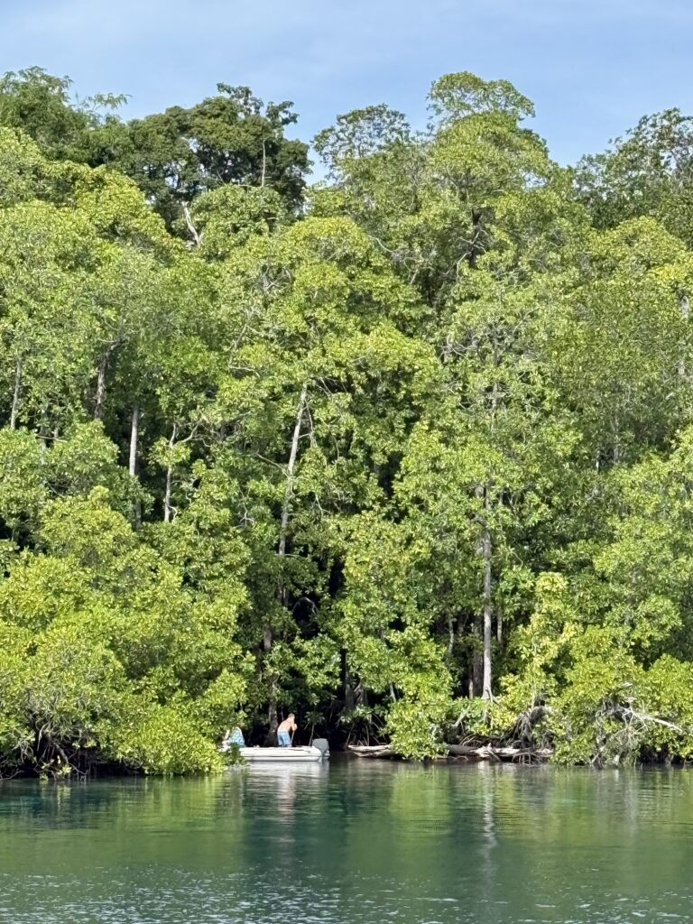 Luke and Milly finding a Mangrove tree to tie us up to
