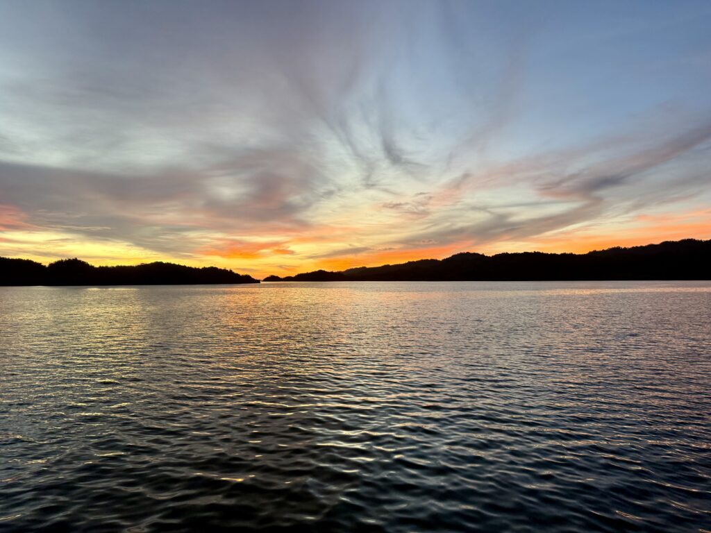 Phoebe and I went for a good paddle in the kayak, while Rowan led the way on the Stand Up Paddle Board. We wiggled our way through the islands, out to some more open water for about an hour, before breakfast, before the heat picked up! We went into the resort to do some last minute Christmas present buying at the Resort Gift Shop. We had thought we might walk up to the look out platform at the top of one of the crazy rocky outcrops but it was way too hot, we had done enough exercise for the day! Back at Polepole we dropped our lines and headed off around midday.