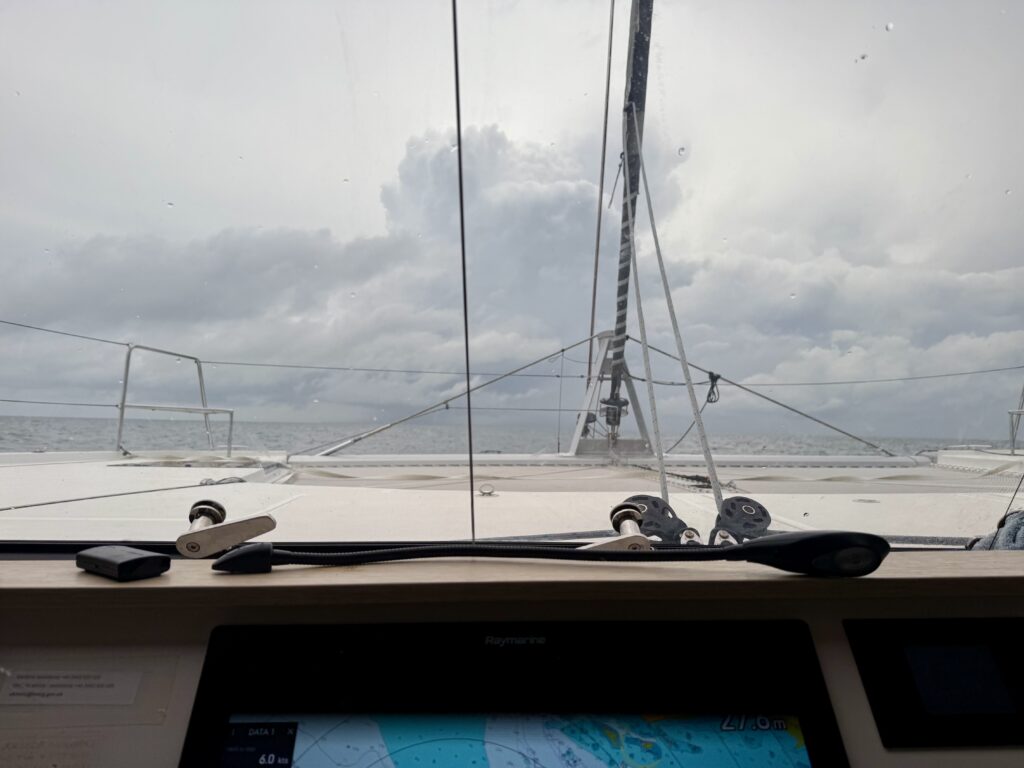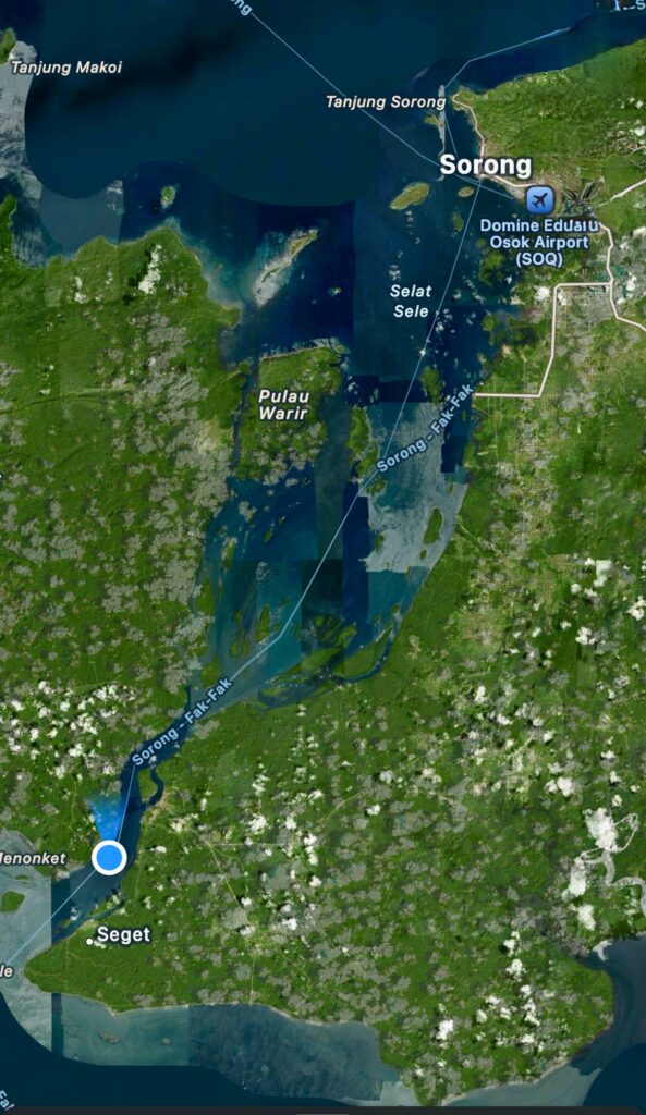 Up at first light, anchor up in the rain and we were off. Poor Rowan was so disappointed, the predictions of good winds for us were nowhere to be seen. It was a motor often over very shallow water which was nowhere to be seen on the charts, this made the water choppy and not the most pleasant motor. Rain downpours came and went all morning, it finally eased up a bit for our entry into the passage to Sorong, which is over thirty miles long. This took some navigating between markers and shallow water plus loads of local boats.