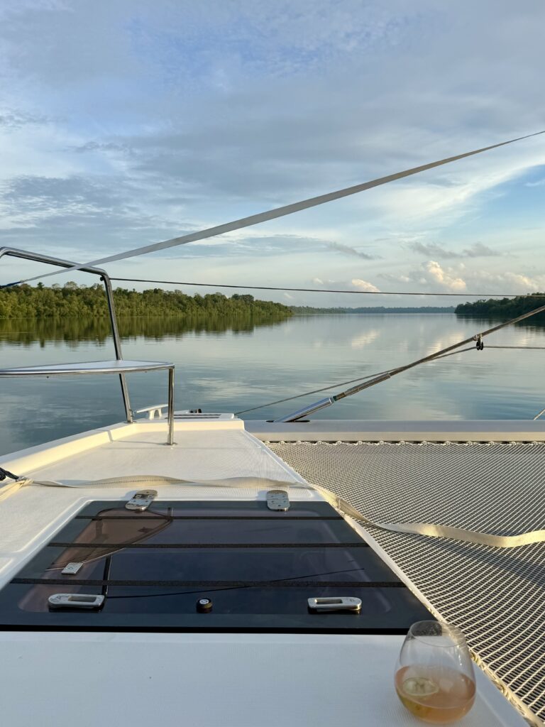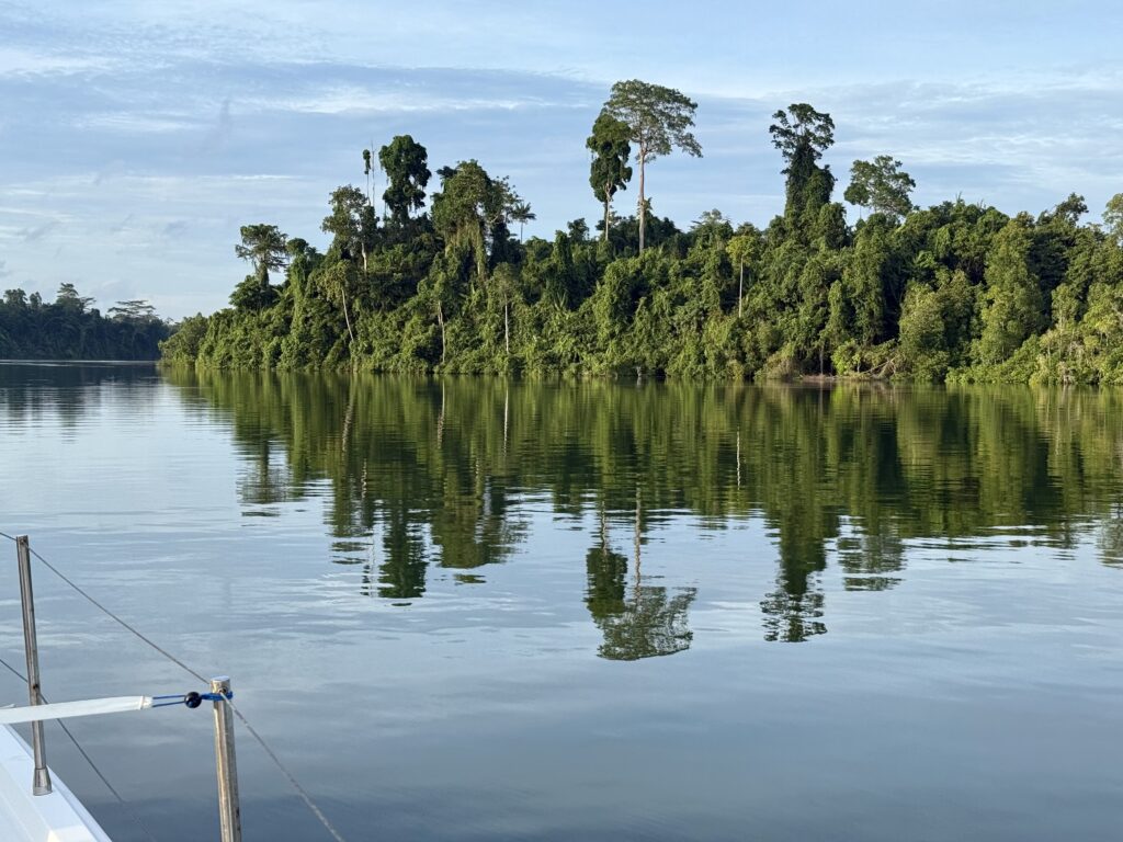 We finally made it to a split in the water, there is an anchorage up the smaller left arm which was idyllic wilderness. We had a wonderful evening listening to the birds going back and forth what was like a huge river. It is actually connected to sea, the water is brown from the rivers that enter it. It was a very peaceful night with loads of insect an frog noises serenading us to sleep. Not a soul in sight, no villages, no boats at all. The current is famous in this area for getting up to 4knots, but it felt like the anchor sunk in mud, so we were happy we were not going to budge.