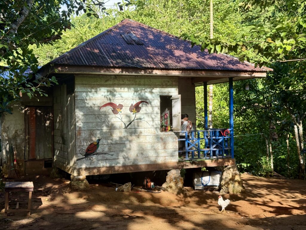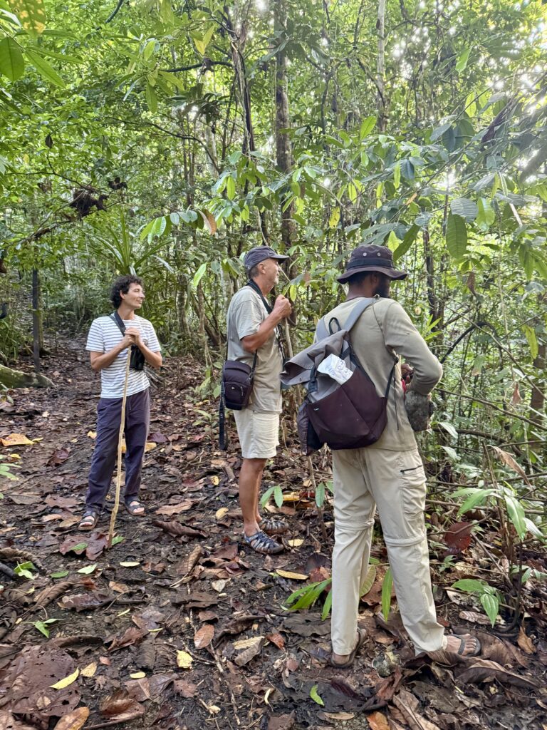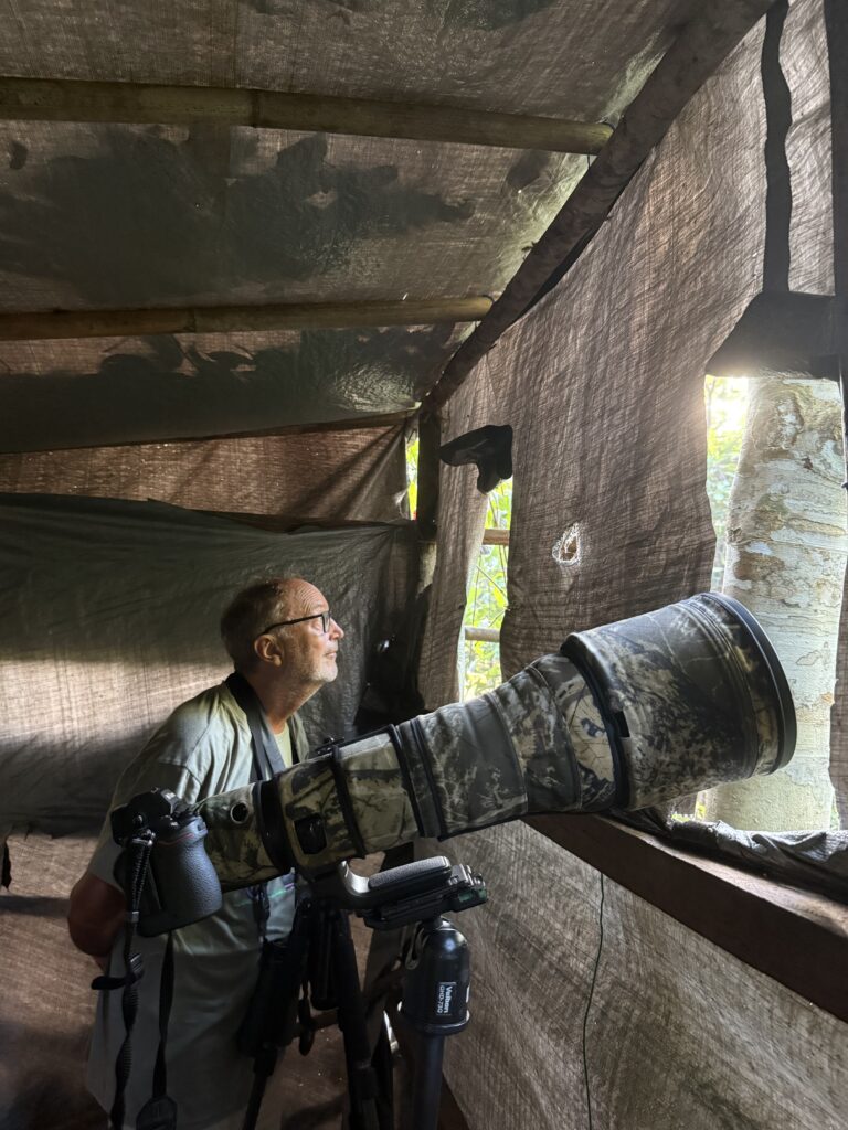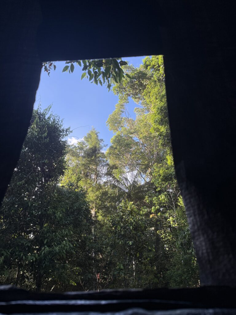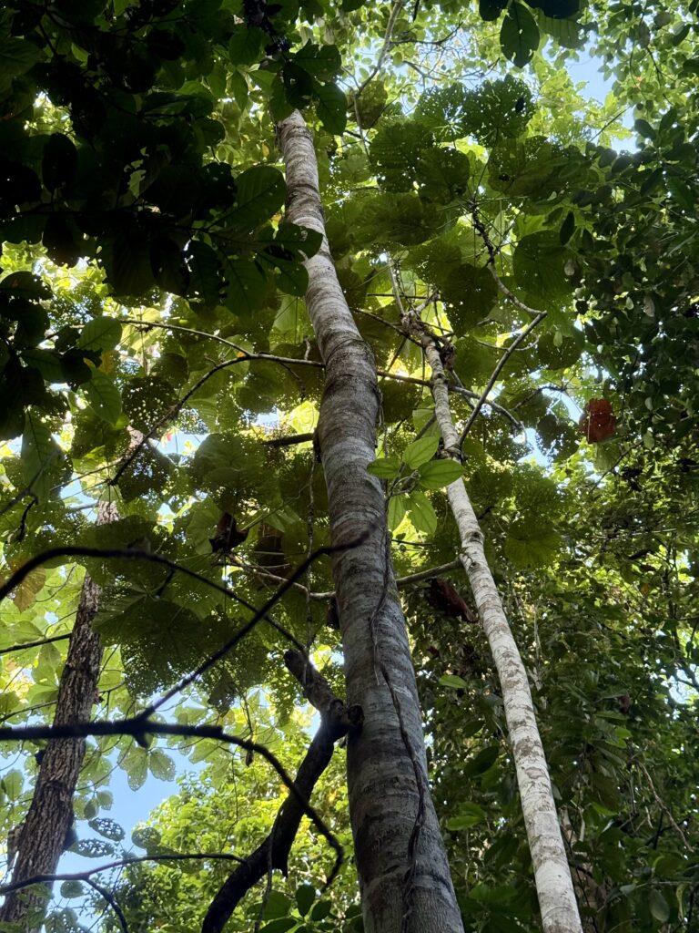 We were up at 4:30am and in the Car with Marlin our bird guide by 5am. It was about a twenty minute drive followed by a very sweaty, muddy steep climb into the jungle for a couple of kilometres. It started in pitch dark which was pretty hard going and finally the morning sunlight came through. We had a wonderful time listening to a Papuan Frogmouth on our way up to the hide, sadly we never saw it but he responded beautifully to our guides call. We had not realised we were coming to a hide and obviously it has to be booked as it only 8 slots, 4 people on two different levels. Rowan and I were on the top level with two Chinese photographers with enormous cameras. As the light increased the Red Birds of Paradise appeared and did their amazing courting ritual, conveniently mostly on a dead tree so they were easy to spot. So incredible that every morning they appear and do the same routine. It started with the males doing their dances, often one at a time, after about an hour two ladies appeared and there was a riot of action as the men showed off and the lucky men were chosen! It is best to have a look at the video which you will have to log onto the website to view, as the still shots do not do justice to the display. The control of the two long skinny tail feathers that finally flop over when he is completely upside down is extraordinary. It was an amazing thing to watch, only marred by the clicking of the Chinese cameras next to us. We also had swarms of mozzies, luckily we had covered ourselves in repellent. After about an hour and a half we made our way down to the owner’s little house near the road where we were given a hot drink and Pisang Goreng (bananas in batter ) that were delicious. In the garden of this birdwatching house we saw the spectacular Palm Cockatoo. Sitting in a bush nearby was a Beautiful Fruit-Dove, which lived up to its name, it was truly beautiful, very plump and colourful. It was a very successful trip we will do another tour with Marlin when we are back in town, to see the Wilson’s Bird of Paradise that does its courtship dance on the ground in the late afternoon. Marlin identified the birdsong we have been so enjoying as a Raja Amat Pitohui.