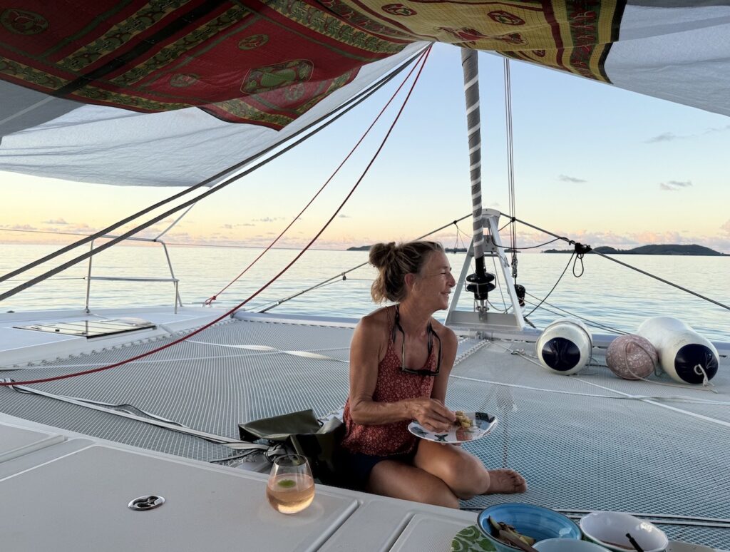 Claudette came round in the evening for snacks and drinks, she still sounds full of cold although she assures us she is loads better. We are beginning to think we all may have had Covid, I think my nose is still blocked from it which has caused my ears to block. Claudette had a really good passage, she loves the long solo passages, she crossed the Pacific all on her own, so this was nothing really. Although the rogue fishing boats that don’t have AIS on make her really scared, she thought to trawlers were heading towards her in the night so she did a 30 mile detour to try and lose them. She is delighted to be here, she is heading to Indonesia where she intends to spend at least a year. Her ultimate plan is to sail to Madera Portugal, via the Suez canal. She has property there that she inherited and has to build on it before losing the rights. She paddle boarded back in the dark, we spotted a light and it was a guy fishing from his canoe. We made sure she got home safely!