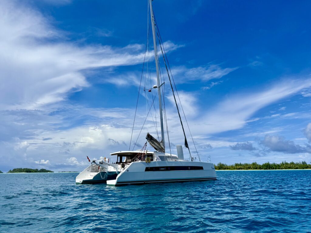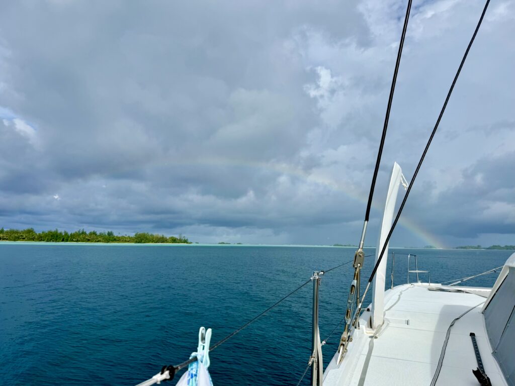 We went for a snorkel between squalls, heading in the other direction to yesterday. Sadly the water was so hot in the shallower areas it was really unpleasant, it makes the visibility really poor. There were some nice pieces of big coral, but loads looks in such bad condition, sadly it must have been magnificent once upon a time. We saw loads of colourful clams, some embedded in the middle of spiky antler coral which was unusual. Loads of big tree trunks in the water, these islands are definitely sinking under the water. I saw one small reef shark from the dinghy, I can’t believe they like the water that hot. We also saw another big Napoleon wrasse with his bulbous nose, always fun to see. Quite a few fish but not abundant.