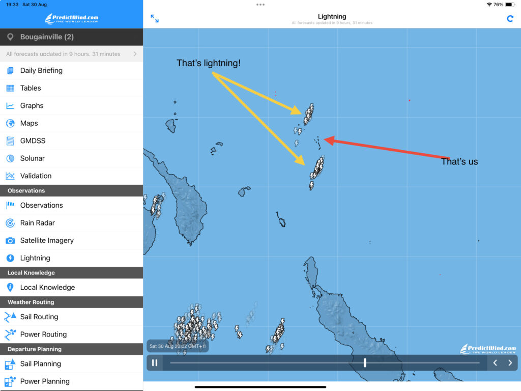 The forecast was for rainy squalls, in many ways it was a relief from the intense heat. Rowan thinks it is hotter as we are getting closer to the equator. The squalls seem to suck away every breathe of air before they arrive which is stifling, making us sweat profusely!