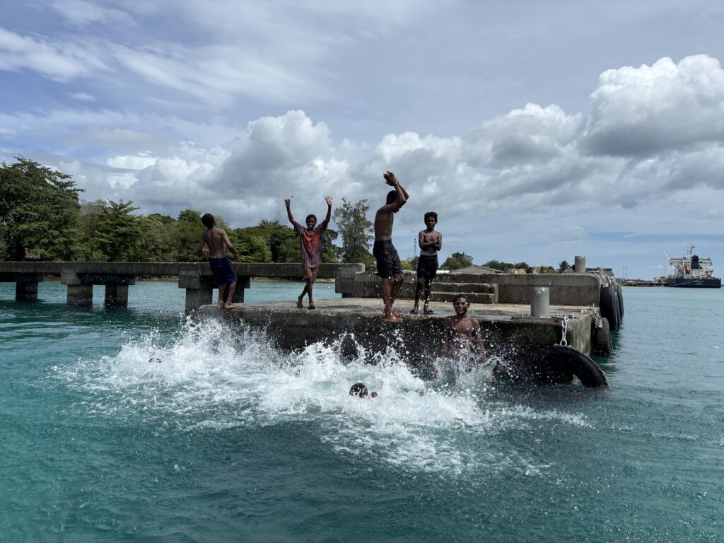 We headed further up into town away from the waterfront to the shops, we found an amazing hardware shop, this place is just like Buka, much more well off, and crawling with Toyota vehicles! Rowan was keen for some decent rum, to go with all our coconut juice, the stuff he got in Solomon’s is filthy. Booze is an issue here, clearly it is what fuels the raskals (pigeon spelling). We went to the big supermarket mentioned in the cruisers guide and it was significantly the best supermarket since leaving NZ. The last cruisers who visited here about 3 weeks ago were unfortunate enough to be in the same supermarket when is was raided by raskals. We hear the raskals were caught and no longer exist, according to all the locals, and the resort security guard. No court case nothing, just done away with! I guess what it does do is make the raskals think twice before misbehaving again. The resort and security tell us it is fine to walk around, just not at night. Independence celebrations happen next week, we will plan to be away from the town.