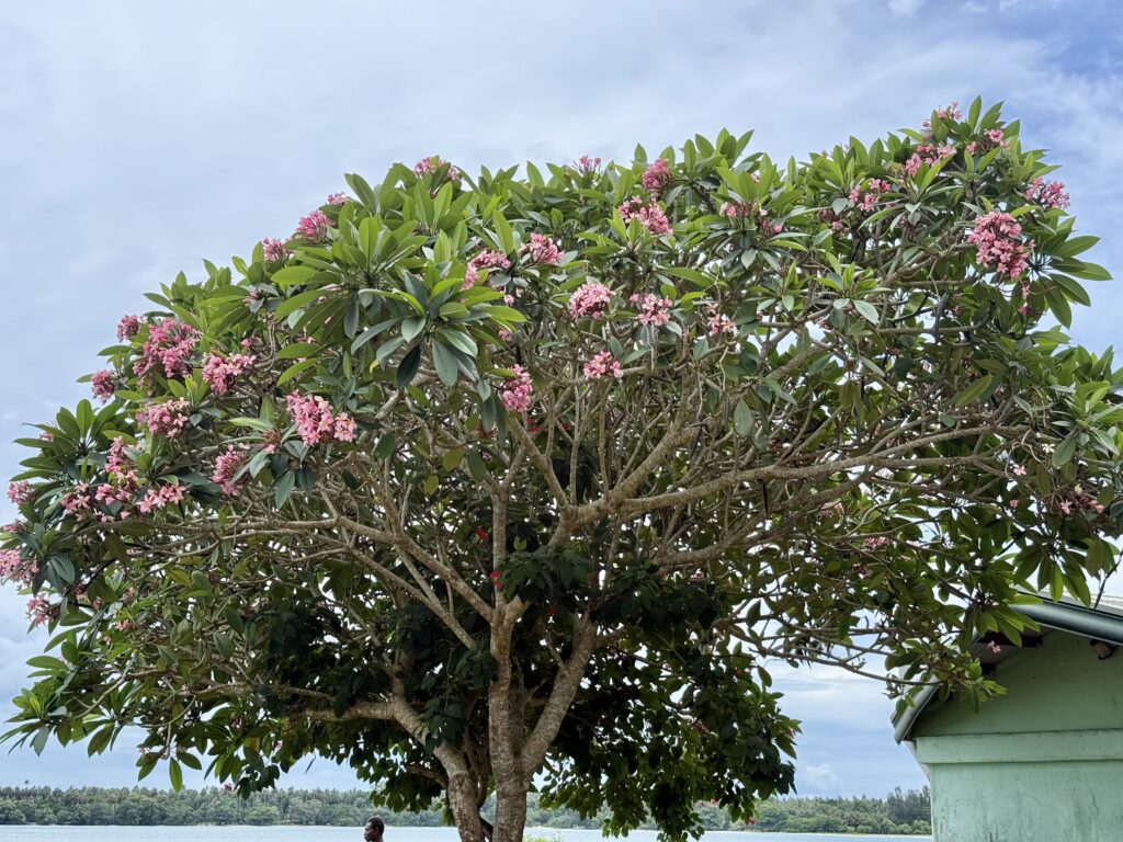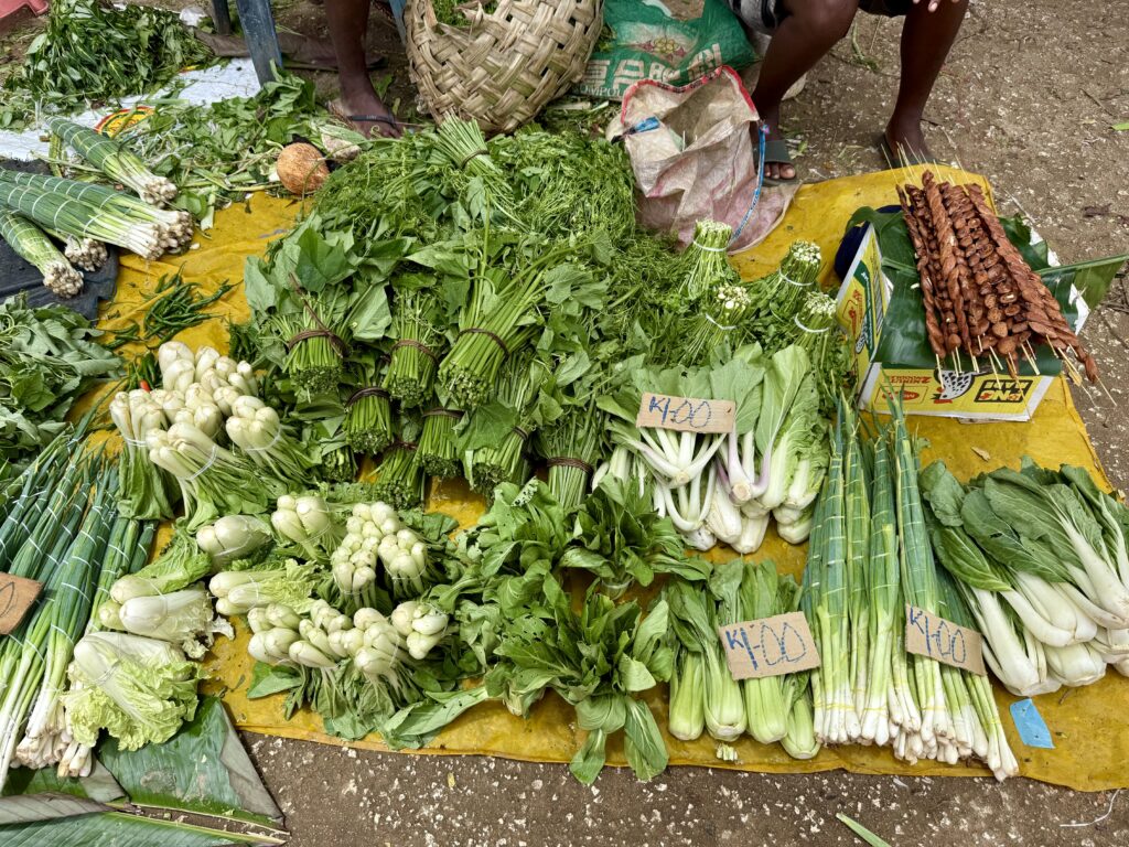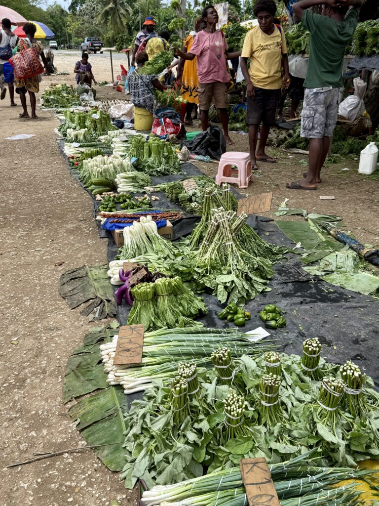We had a great sleep last night and feel restored after our overnight passage. After a late breakfast, we went into town to go and stretch our legs, and see what town is like, to check out the avocados! It is a bit like Buka with a thriving boat taxi rank heaving with people. We were able to tie JeldiJeldi up to a dock that nobody was using, clearly not allowed for taxis. The water front has an old colonial feel with a tree lined waterfront road. The market has spread onto the roadside there are so many traders. We saw loads of green veggies, more importantly loads of avocados. The one market shelter had loads of craft stalls, mainly shell jewellery and woven baskets. I couldn’t resist some necklaces made out of little shell discs from the Kina shell, this was currency before banks arrived, the notes are still called Kina today.