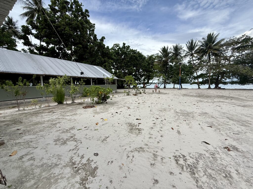 We got back, early afternoon and Rowan announced he had booked us into the resort for the night, for a treat. We packed our bags and headed over. It is a lovely resort, started by an Aussie couple 20 years ago, everything is made locally, no glass windows or modern walls, clever architecture for air flow, and all made from pandanus leaves. They have local carvings everywhere and local artwork, all very relaxed, with sand floors. Rowan was a little disappointed as they did not have a room over the water for us, but it was fine where we were as we could see PolePole