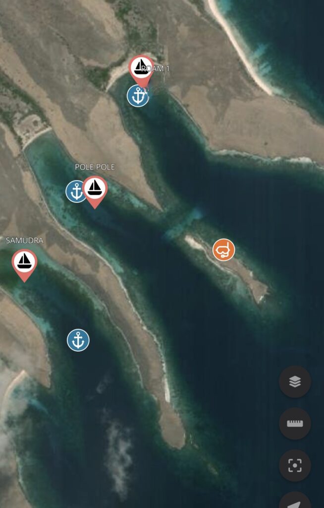 In the evening we were checking our NFL app, planning our departure tomorrow as we think the swell and wind will have died down a bit, when we spotted that two cats had arrived in the bays either side of us. We have met Samudra in Raja Ampat they are going the same direction as us to Lombok, an Australian family with kids. The other boat Roam1 is heading to LBJ. We never saw them enter the bays, so if we had not seen them on the App we would have had no idea we had neighbours. We had a couple of evening squalls and are crossing everything that it blows the weather away and we can move on tomorrow.