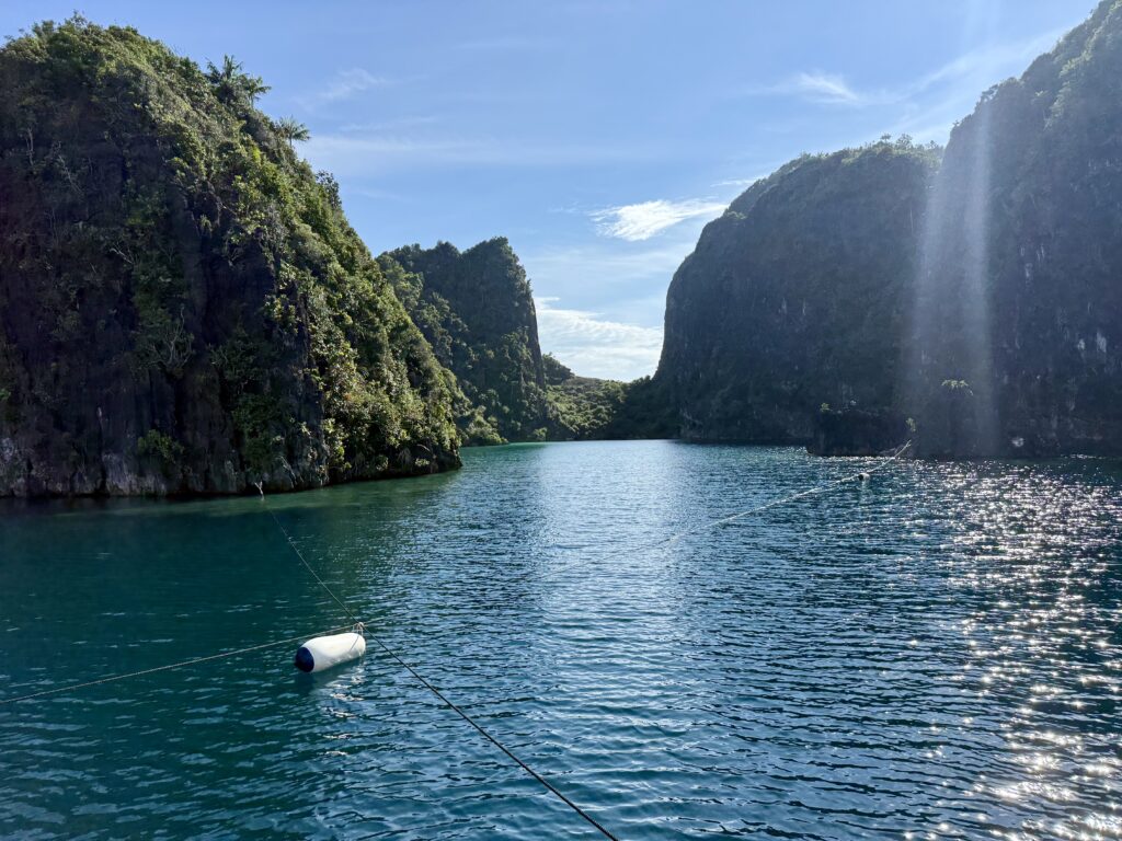 Finally sorted with our ropes around the limestone, we are right down the gorge with coral all around us