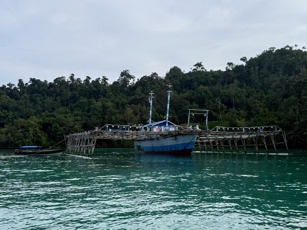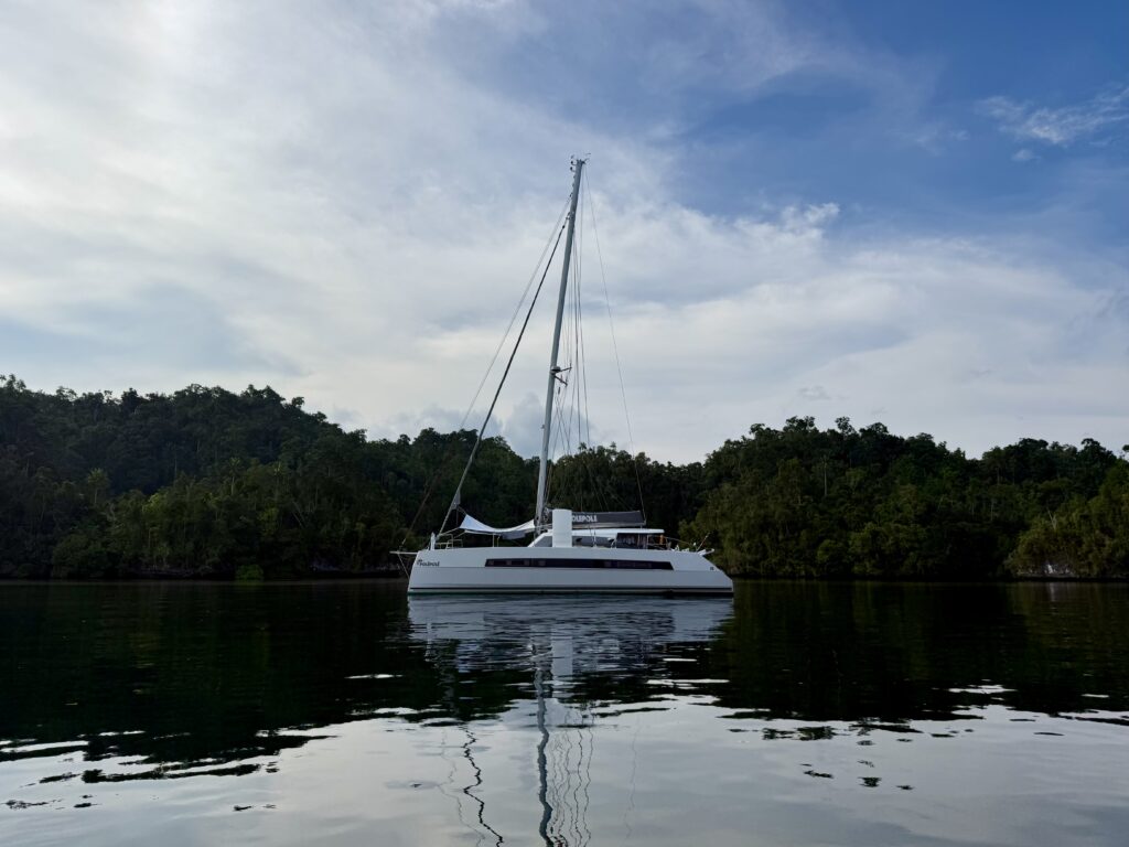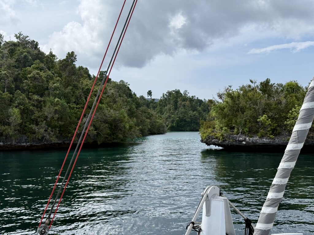 Phoebs was with us by 8am, Nur picked her up from the airport and brought her to us. She has had a great flight across with Turkish airlines to Jakarta via Istanbul and the last leg to Sorong on a local flight. She came through with her extra bag containing a stand up paddle board, over 4kgs of cheese, tahini, coffee, sunflower seeds, bottles of gin and many, many other goodies. What a star! So lovely to have her with us. Once onboard Nur released our lines and we were off out the marina. Departing without a single entanglement with next door’s lines!