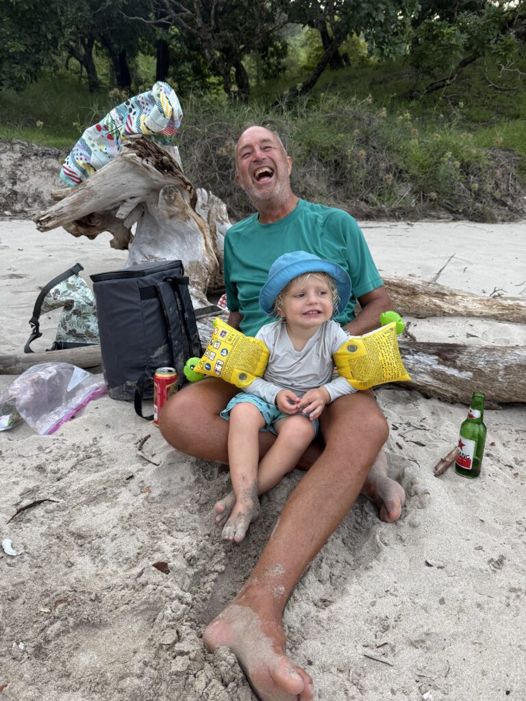 First thing in the morning we spotted two identical logs on the beach and thought that was a bit odd. We then discovered it was two dragons sunning themselves, in identical positions. The rest of the day was having fun in the water and the beach with the kids. We finally had a bit of breeze that was able to lift the kite I bought them from NZ. We inflated the paddle board which Lovat and Monique enjoyed paddling around on. We did a little bit of snorkelling, but it was rather short-lived as there were jelly fish about. Poor David got a big sting.