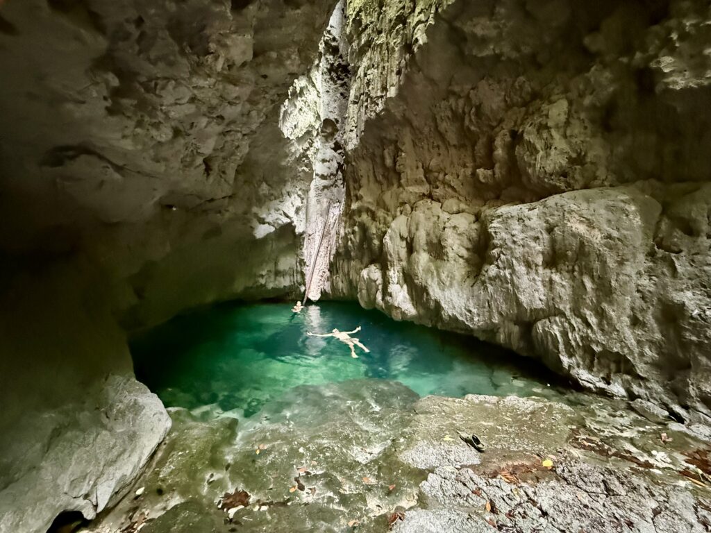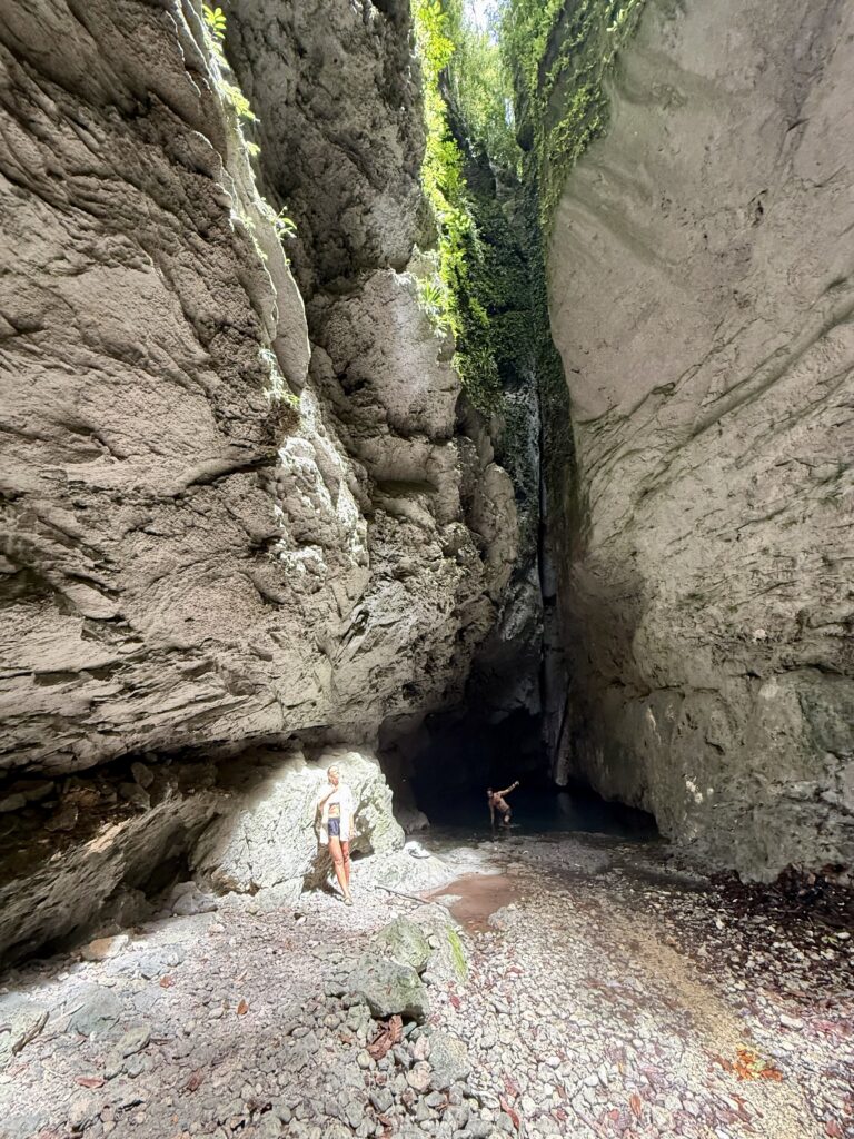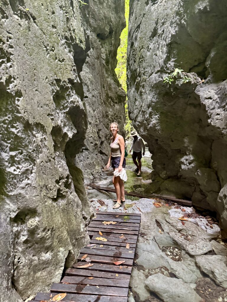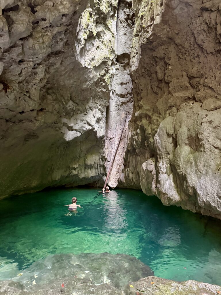 Sadly my cold has really kicked in, I wasn’t feeling that great so I opted to have a quiet day to try and recover. Phoebs is sneezing a lot but the lurgy hasn’t gone to her chest, so she was up for doing the excursions. They started with the canyon near where we are anchored on the edge of the big body of water. We visited it last time we were here and we were so surprised that there was nobody visiting, the yachts we have met who came up here have all just done the Blue River and not the canyon. Wonderful for the three of them to have the place to themselves, it is an incredible canyon, and like I mentioned last time, if there was a flash flood and you were in it, you would not stand a chance. Maybe that is why nobody goes! The walkway had definitely deteriorated , so definitely not in much use. The pool is such an amazing green, the water must seep underground, as there is no water in the canyon. It is a very spectacular spot which Phoebs and Dani really appreciated.