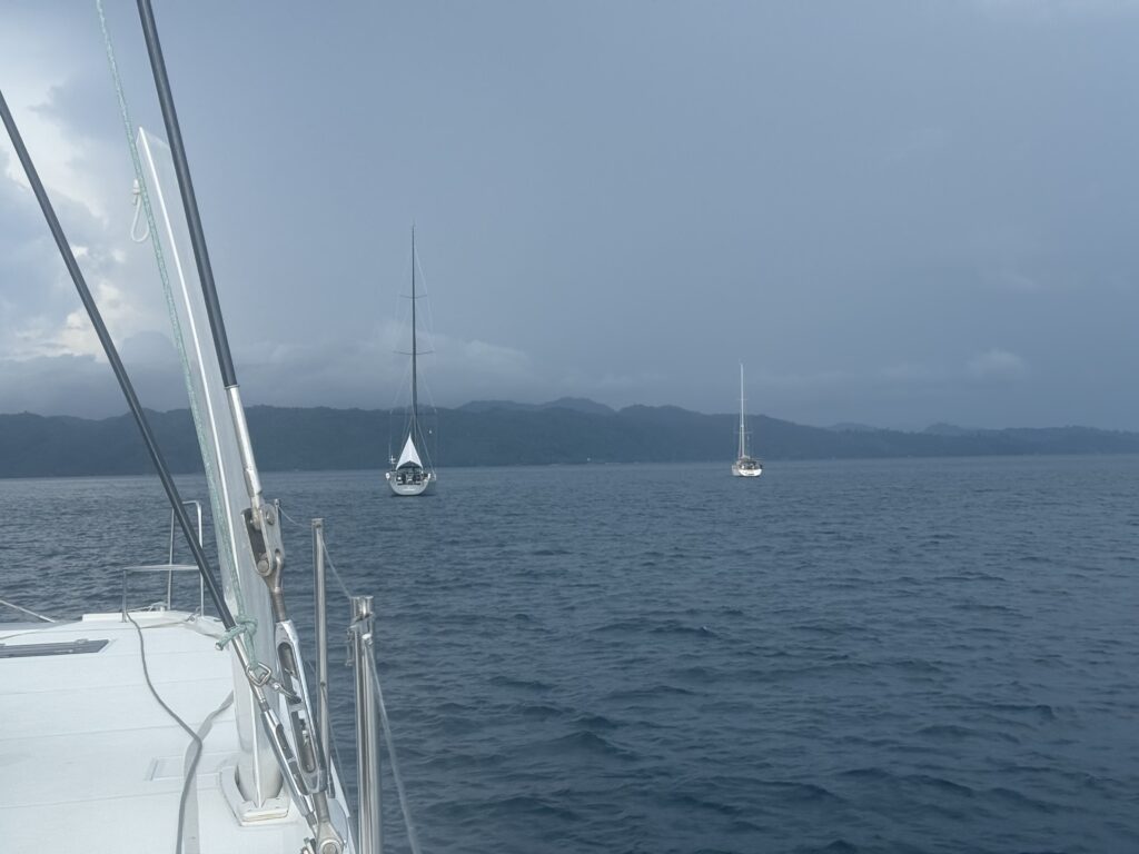 We had a busy morning going into town to do a few chores. We had to pick up Rowan’s BCD from the dive shop, we left it to be repaired the first time we came to Waisai. Of course it was closed when we arrived, we headed into town to find a duvet cover as the sheet on my awning is already shredded from the elements. the sun damage on everything is incredible. It was a miracle we found some bedding in a Chinese shop, as google translate was no help. I just spotted a couple of nasty looking packs of bedding. They cost £10 and looked perfect so I bought two. On our way back to the dive shop, I decided to unpack the duvets to get rid of all the packaging and discovered that I had bought bottom fitted sheets and pillow cases not a cover. Thinking about it duvets are certainly not needed here. We got the BCD and returned to the duvet shop,I swapped the one I had not opened for another garishly coloured pack that looked more like a duvet cover. I unpacked it, success it was an enormous king size duvet cover. The awning is going to get a lot more exotic! We did a quick dash back to the fruit and veg market to get a few more things. Back to the boat and we were picking up the anchor mid morning, we waved goodbye to Gary and Kim having a late breakfast.