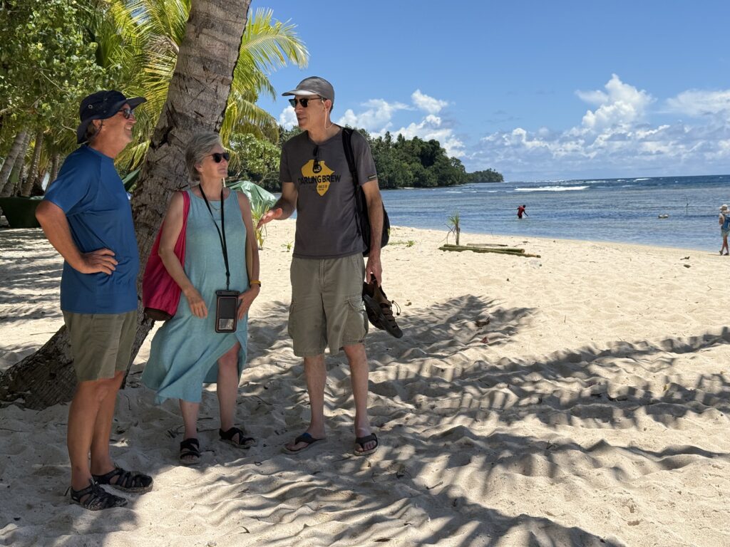 By the time we got back to Kavieng it was after 3pm, after a little stop at the supermarket to stock up on more of the delicious locally made New Ireland dark chocolate. We went back to the market to buy a bit more fresh veg and fruit as we set off tomorrow for a week cruising around the archipelago here. We bought loads of delicious passion fruit, red pawpaws, tomatoes and expensive carrots. Judith and I visited the craft area with all the shell jewellery, where I bought a necklace for Grant’s mum, Natalie. She has just turned 90, and still sharp as anything. Rowan and I have always enjoyed her company over the years, she is a lovely lady.