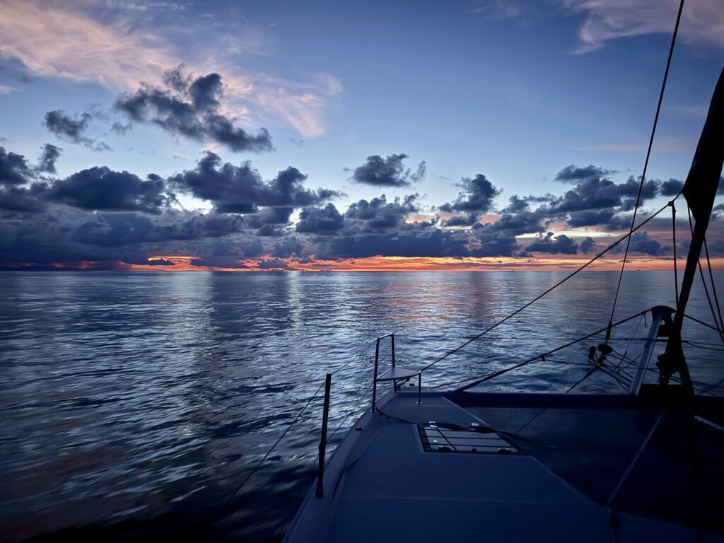 My morning shift included a great red sunrise, with dark clouds but no wind. We motored all last night and no sign of any wind during the day either. It was a slow hot day, running the motor always makes it feel even hotter somehow. We had to be vigilant as we discovered there were still massive tree trunks to avoid, my theory about them being caught in the bay was wrong, they are everywhere. Not only that we have FADS (Fish aggregation devices) to avoid too, plus fishing boats that don’t appear on our radar and obviously don’t have AIS. Otherwise it was an uneventful day, just grateful we topped up with fuel in Biak. We can easily motor the whole way if need be. We have a very early supper at 6pm and Rowan is in bed by 6:30 pm, so it is a long slow evening.