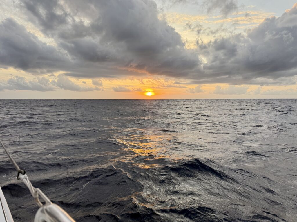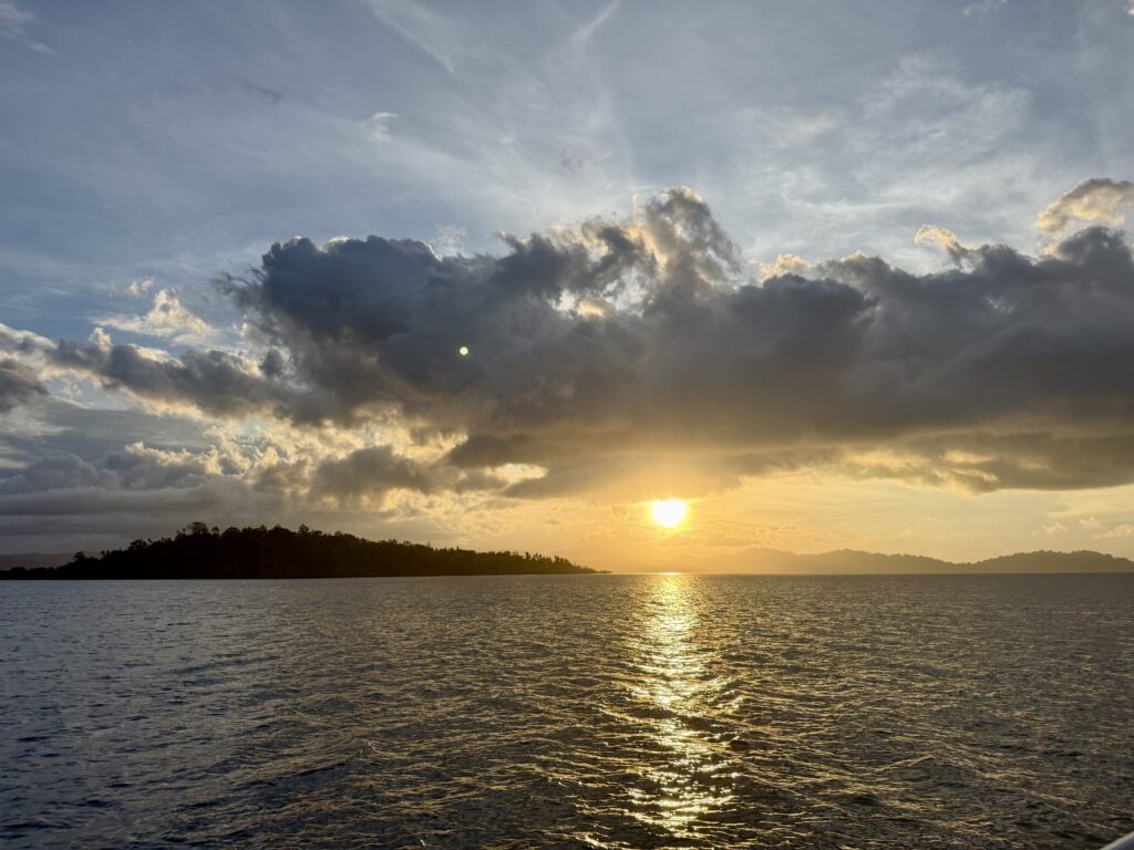 By midday the wind had completely gone, it was hovering around 3 knots, we had to get the engines back on. It was so frustrating, all of the seven weather models Rowan was looking at, all said we had wind. We were definitely in some sort of shadow, we thought the wind was about 5 miles east of us so we spent an hour motoring east with no luck. It was a whole afternoon of motoring gently, we are not too sure where we can next get fuel, there doesn’t seem to be suitable fuel in Wakatobi. So we are being a bit cautious. Of course as evening approached the wind picked up, but because of the risk of hitting things in the water, we will sail with just the jib again, to keep us under 4 knots of boat speed, so that if we do hit something it should not do too much damage. I did the first shift as usual, there were plenty of fishing boats out all brightly lit up and easy to see even if they don’t show up on radar.