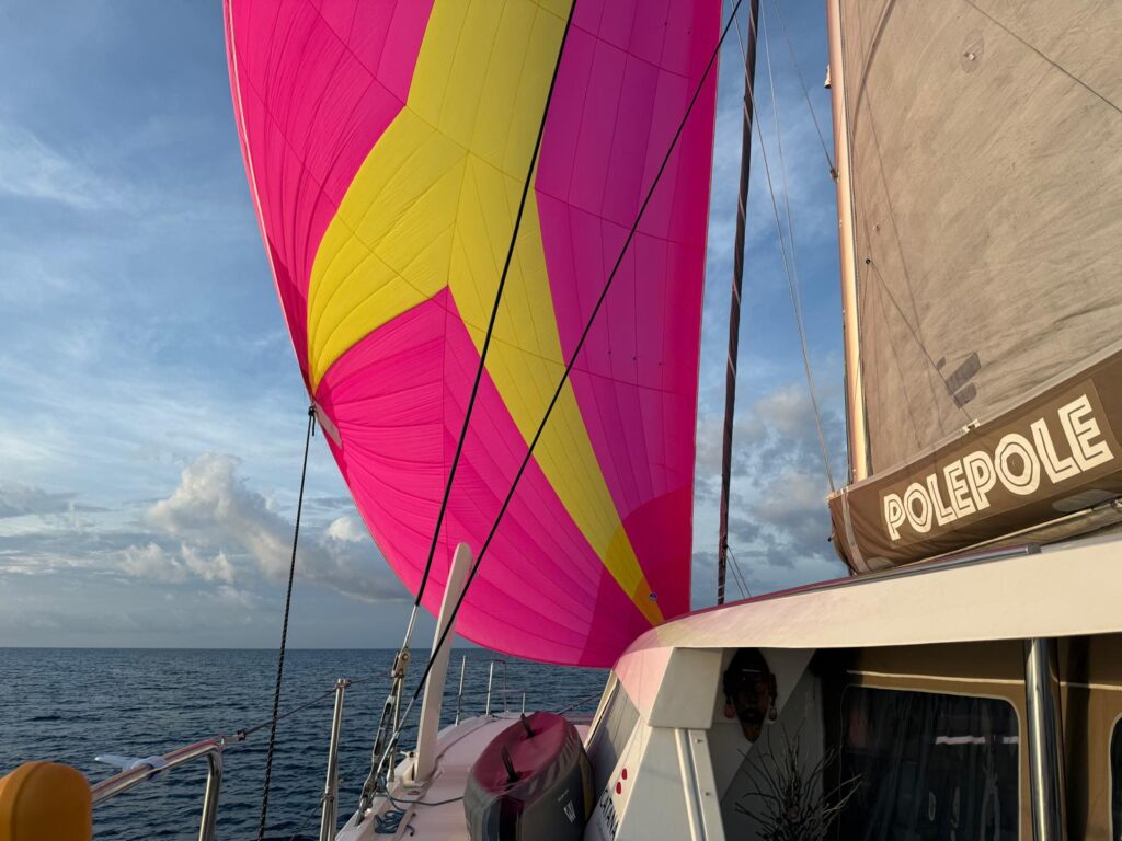 As soon as we were awake we set off, Rowan got Pinkz, our asymmetric sail out the front locker and up while we still had flat waters. Always a bit nervous getting these big sails out when we have not had them up for a while. It went like a dream and we were soon cruising along at 9 knots in about 16 knots of wind. It was a comfy great ride while it lasted. Plenty of big tankers about, we are definitely crossing a shipping route.