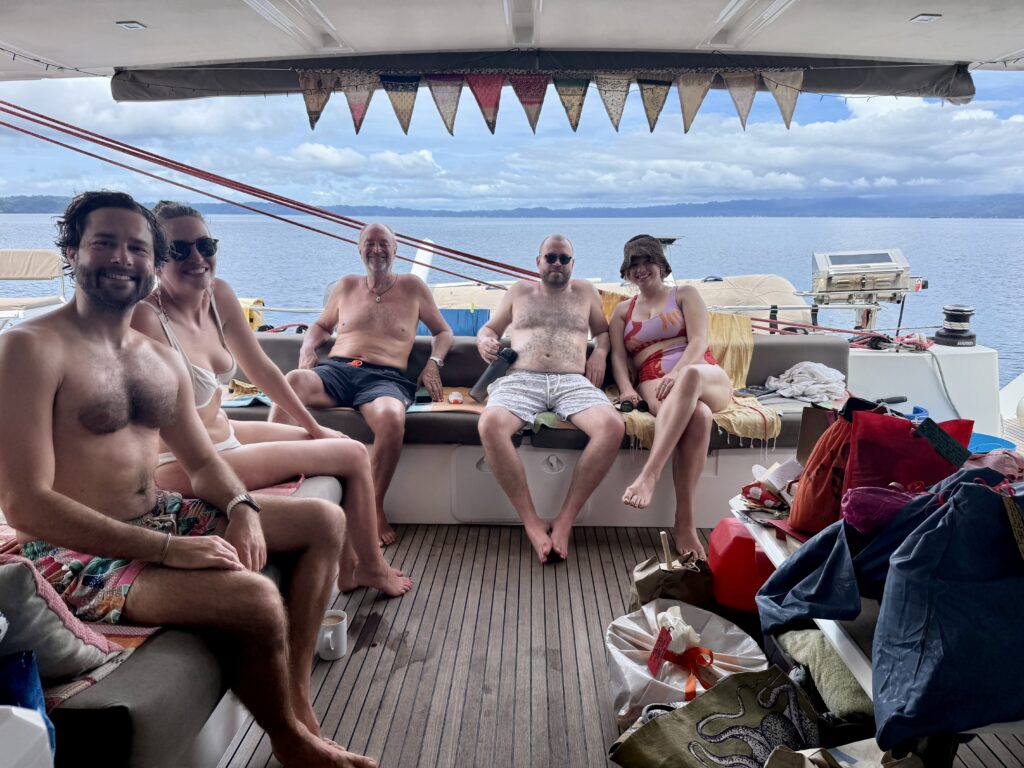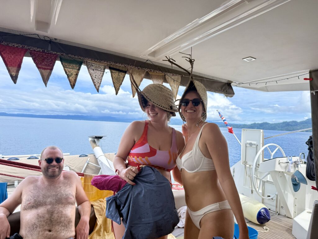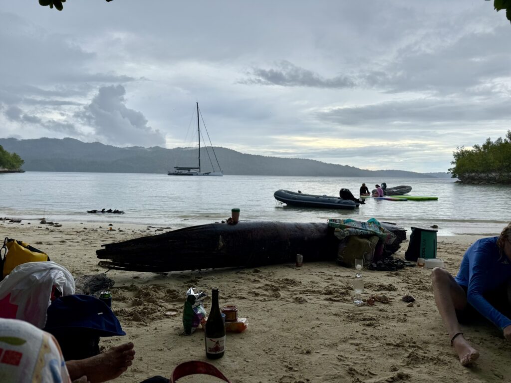 We started the day with a good cooked breakfast, these days we always seem to have guacamole with our eggs as all our avocados are ripening at the same time. After breakfast we did presents, sadly it was about 2am in Sweden so Han couldn’t join in the festivities. I bought the girls loads of goodies from locals all along our travels, they got straw bags from Vanuatu and the Solomon Islands. Loads of carved bowls from the carvers in the Solomons and lots of shell ethnic jewellery from PNG. They each got some lovely pearls from the Indonesian Pearl farm we visited with Clint and Xavi, the boys got a few nice things from the great gift shop at Raja4divers resort on Pef Island. We got an abundance of delicious goodies to eat and treats, Phoebe was most probably responsible for Fortnum & Masons having a very good Christmas! I even got a Christmas pudding, and loads of scrummy dark chocolate.
