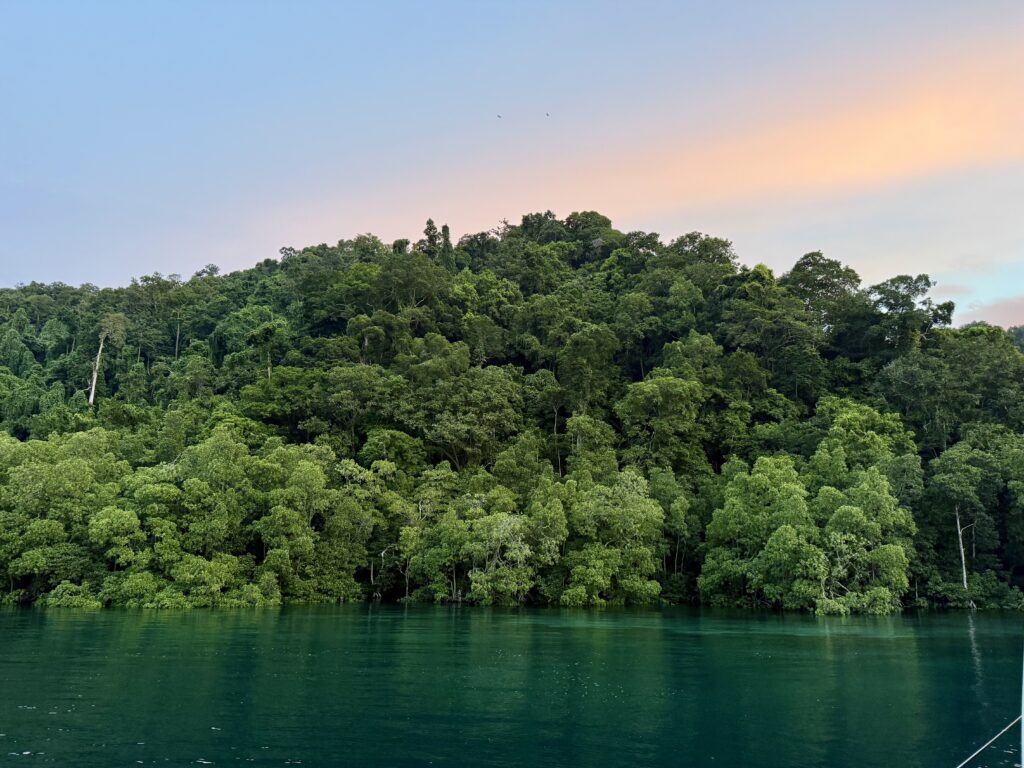 It was a stunning sunset evening, with the bay all to ourselves we enjoyed listening to a riotous evening bird song as they all came home to roost. The hornbills were so easy to spot with their noisy flapping wings. The smaller birds are so difficult to see.