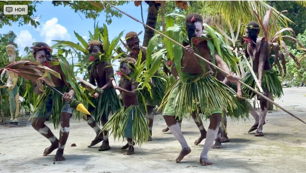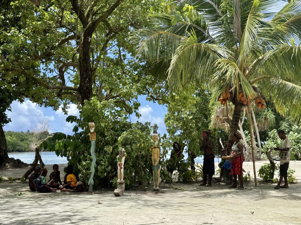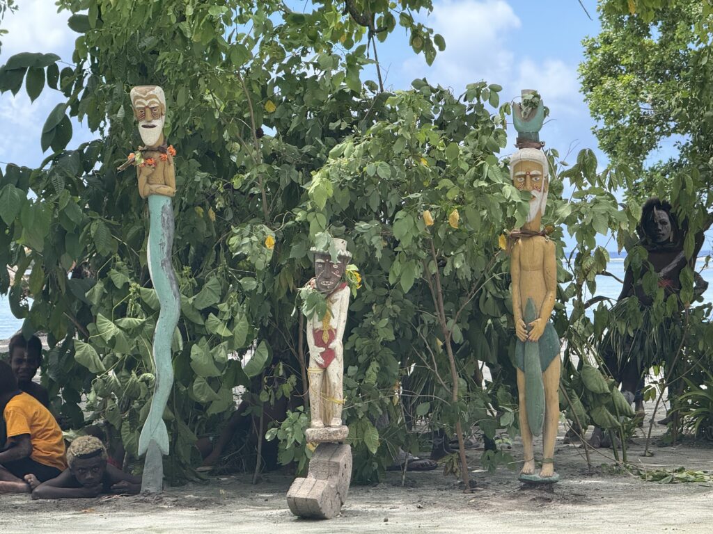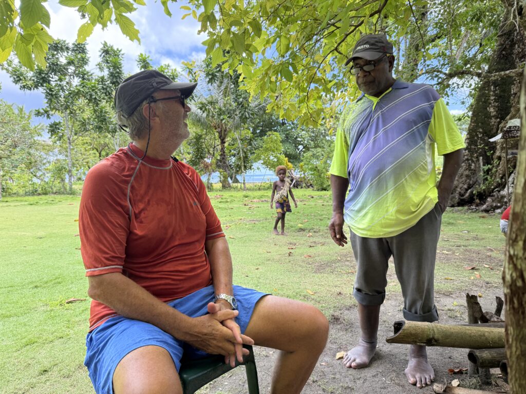 At 11:30 we were back at the village as requested. We were meant to be meeting his son in law who could be the WhatsApp contact for the yachts, he actually works on the mines at the next island but was given compassionate leave for the funeral of a relative. However there were delays getting the body to the right place or something, so we missed him as we could not wait all afternoon. The kids put on their performance, the boys did very well a lot better than the girls whose routine rather fell apart, clearly not practiced. Sadly the youth are not that keen on the cultural stuff, I guess phones give them access to the outside world. It was a fun event nevertheless, with Chief Linus giving long Pigin speeches that we could get the gist of. One comment was very funny, he said we were from Africa which is why we know how to talk to black people…..it was a compliment! After Rowan said a few words, we gave a donation to the school, handed out lollipops to the kids and said our goodbyes. I must say it has been a stunning anchorage, with such friendly jolly people.